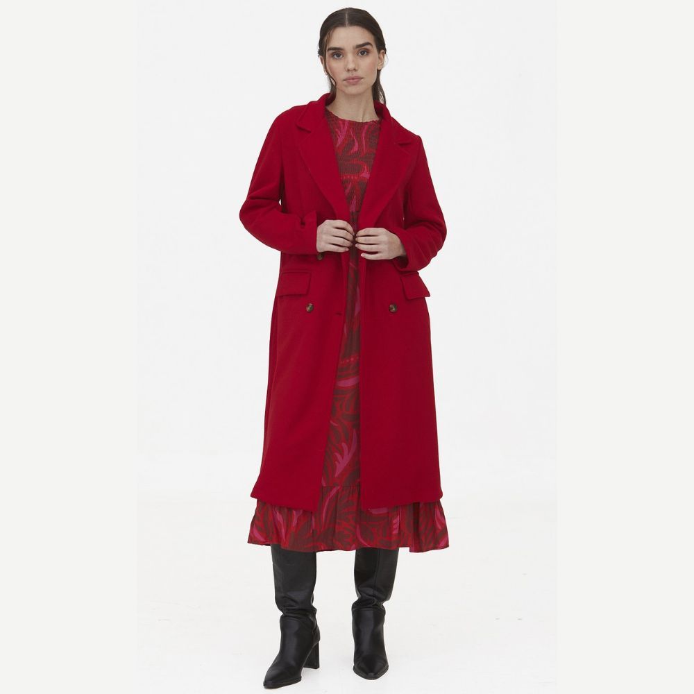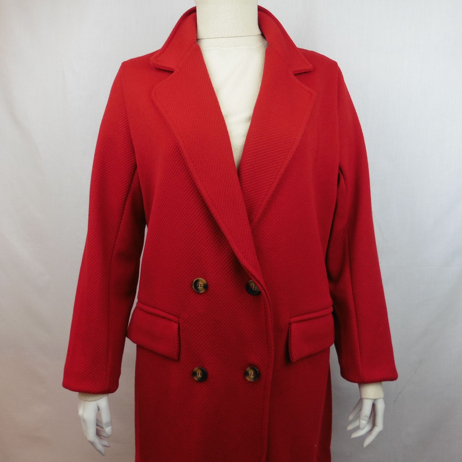 Abrigo de WNT Collection, 71% algodón 26% nailon 3% elastano, sin forro, cuello solapa cruzado con 4 botones, dos bolsillos con tapa, punto haciendo canutillo en diagonal en color rojo
