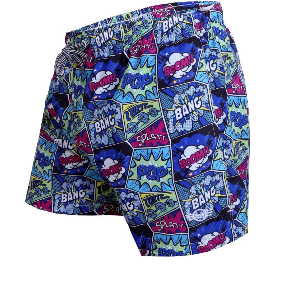Bañador de N&S, 100% poliéster, secado rápido, transpirable, slip de rejilla, bolsillos en costuras laterales, bolsillo trasero con cremallera invertida, con estampado de letras de comic multi color