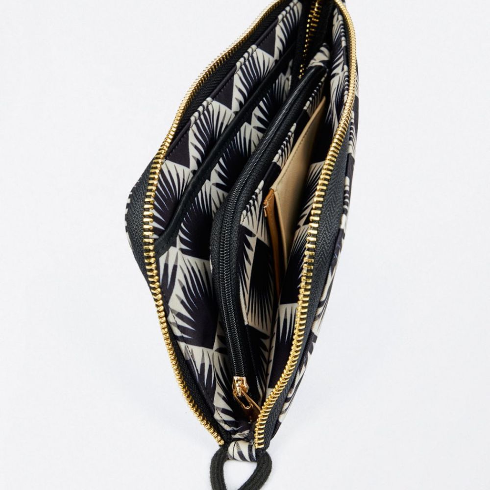 Bolso para móvil de Surkana , 100% nailon, con bolsillo de cremallera para el móvil en el interior y bolsillos para tarjetas, cierre con cremallera, con un cordón regulable para colgar en cuello, estampado en tonos crudo y negro