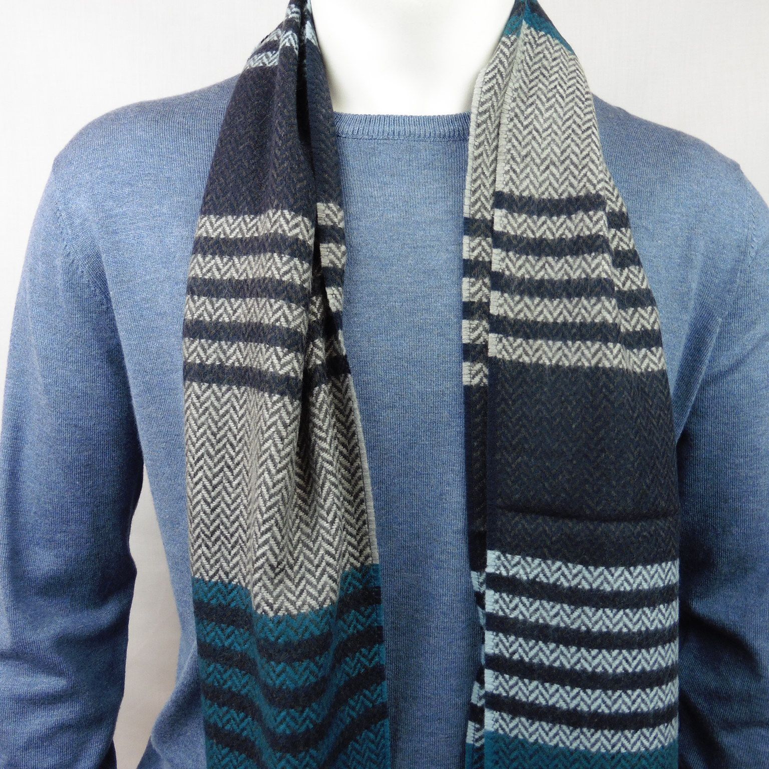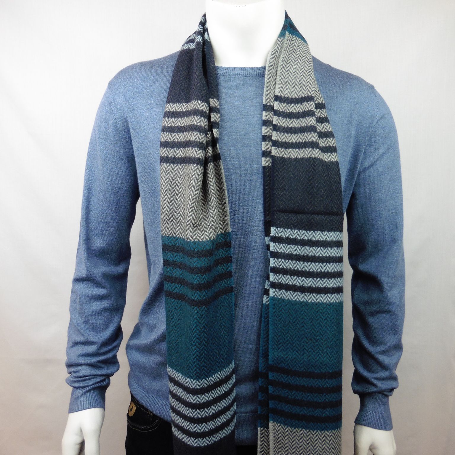 Bufanda estrecha de Boccola, 100% acrílico, de rayas y espigas en tonos