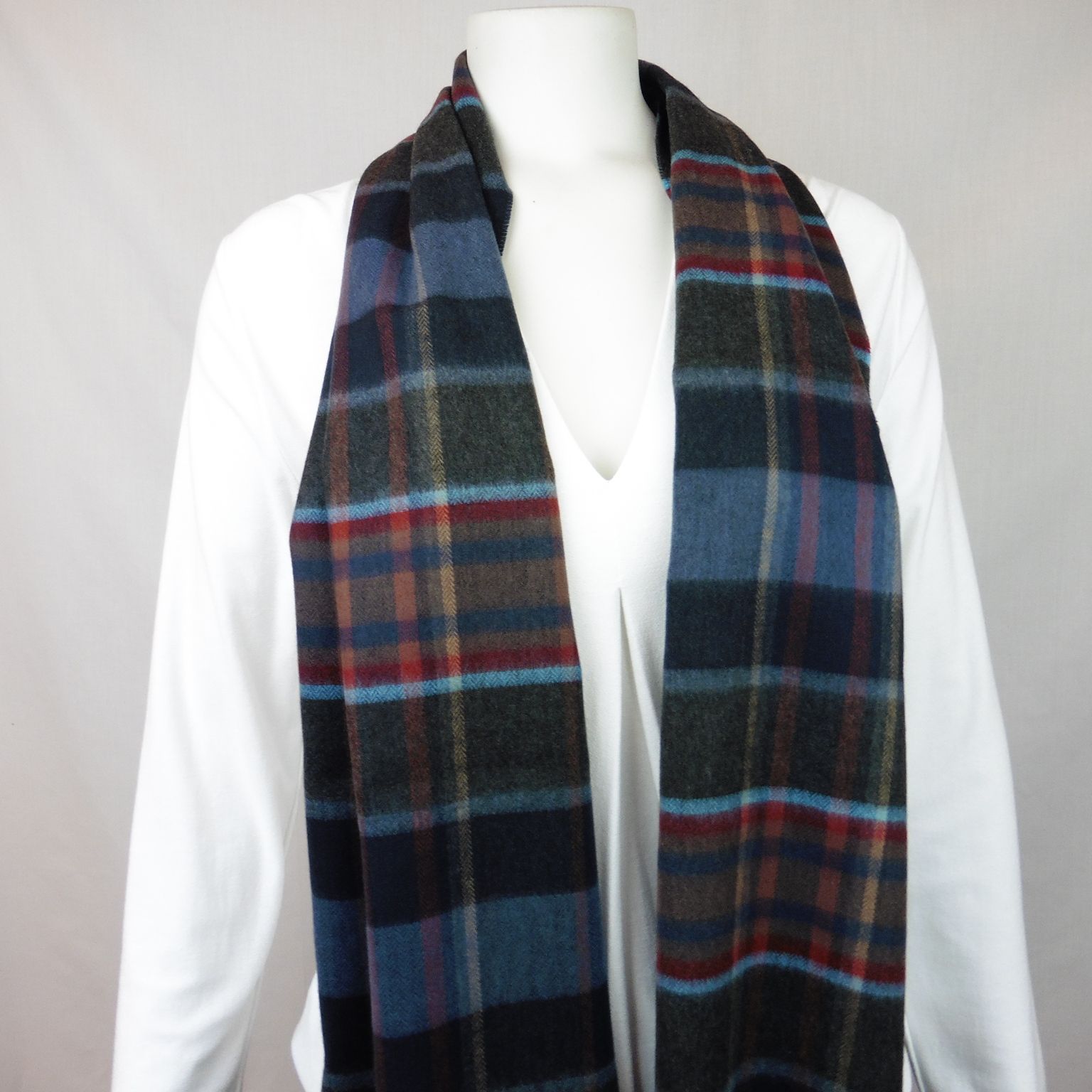 Bufanda de Boccola, 100% poliéster, de cuadros en tonos azules, gris,