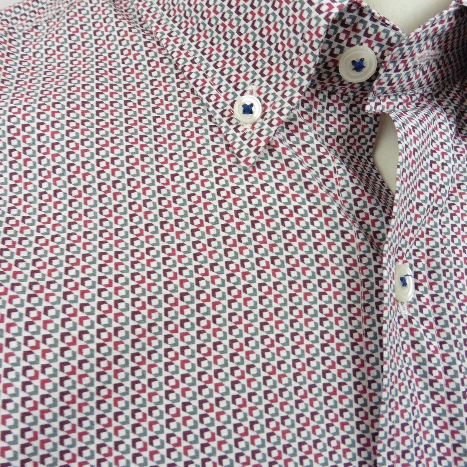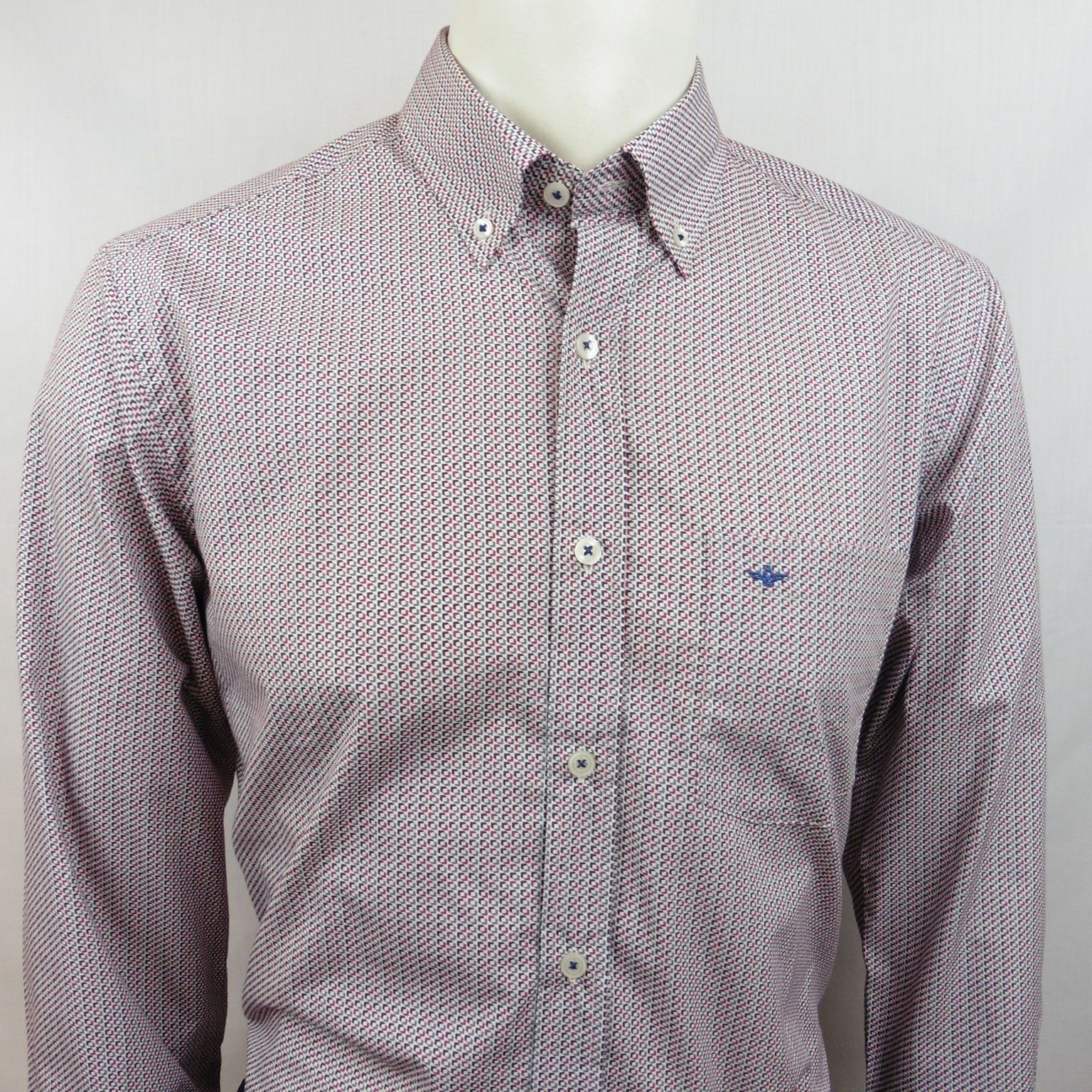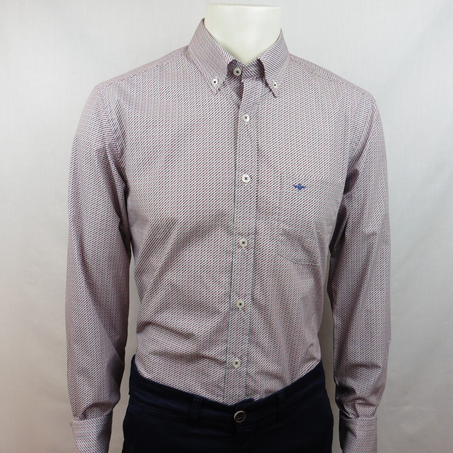 Camisa de Corsare, 100% algodón 4, cuello botones, con bolsillo, estampado mini dibujo en tonos granate y gris