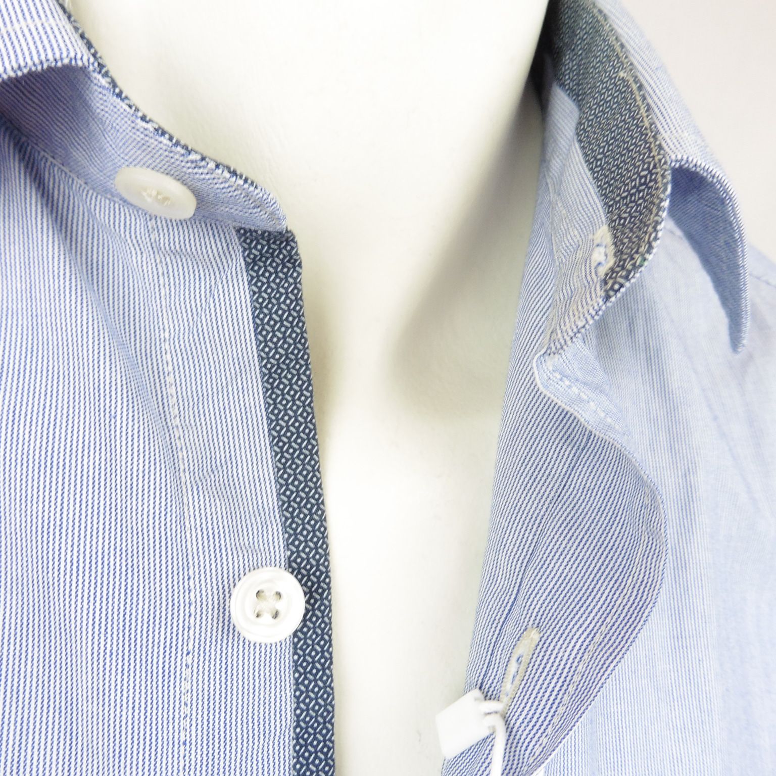 Camisa de Corsare, 100% algodón, cuello italiano, de mil rayas en tonos azul marino y blanco, pinzas en la espalda
