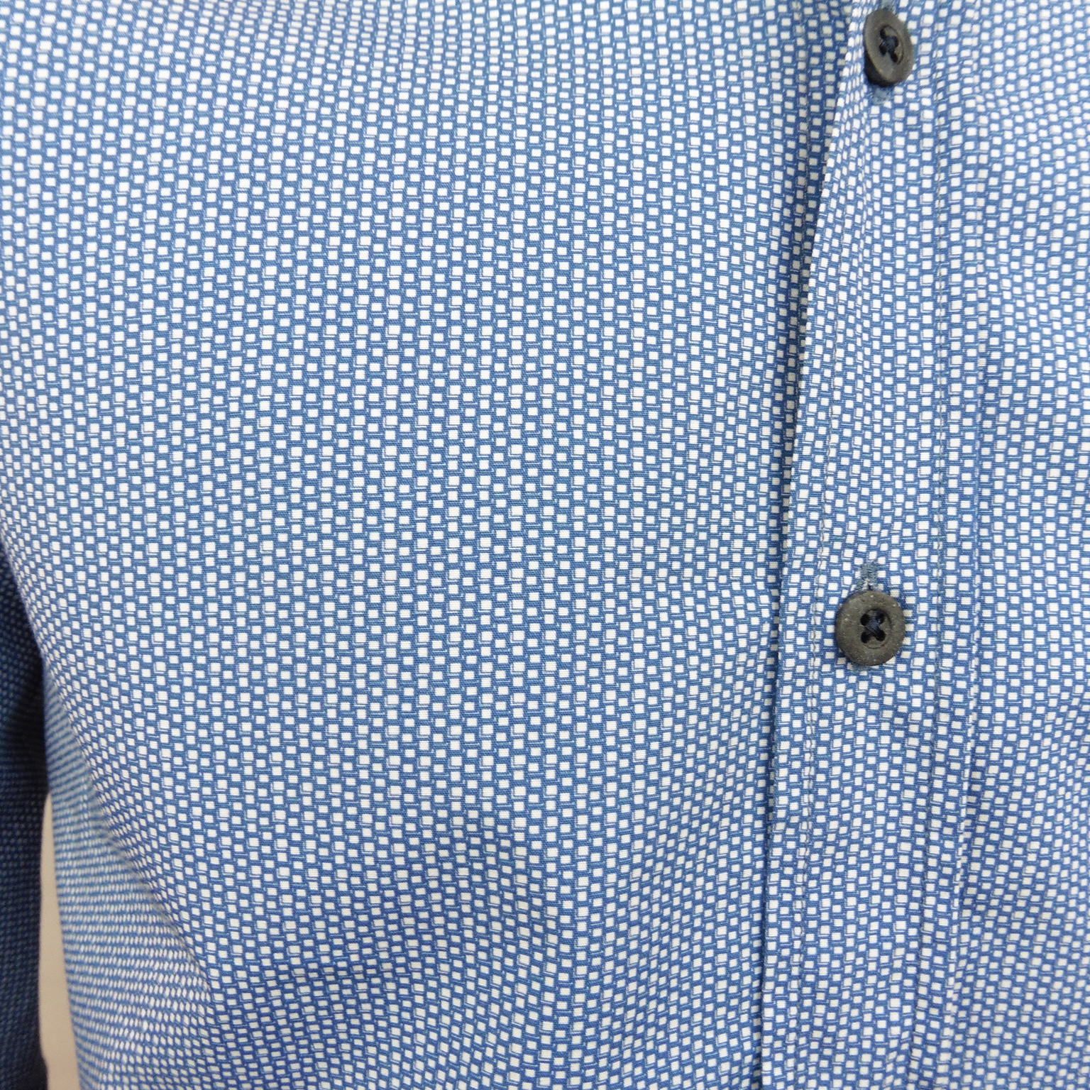 Camisa de Corsare, 100% algodón, entallada con pinzas en la espalda, con estampado de mini multi cuadros en tonos azul y blanco, cuello italiano