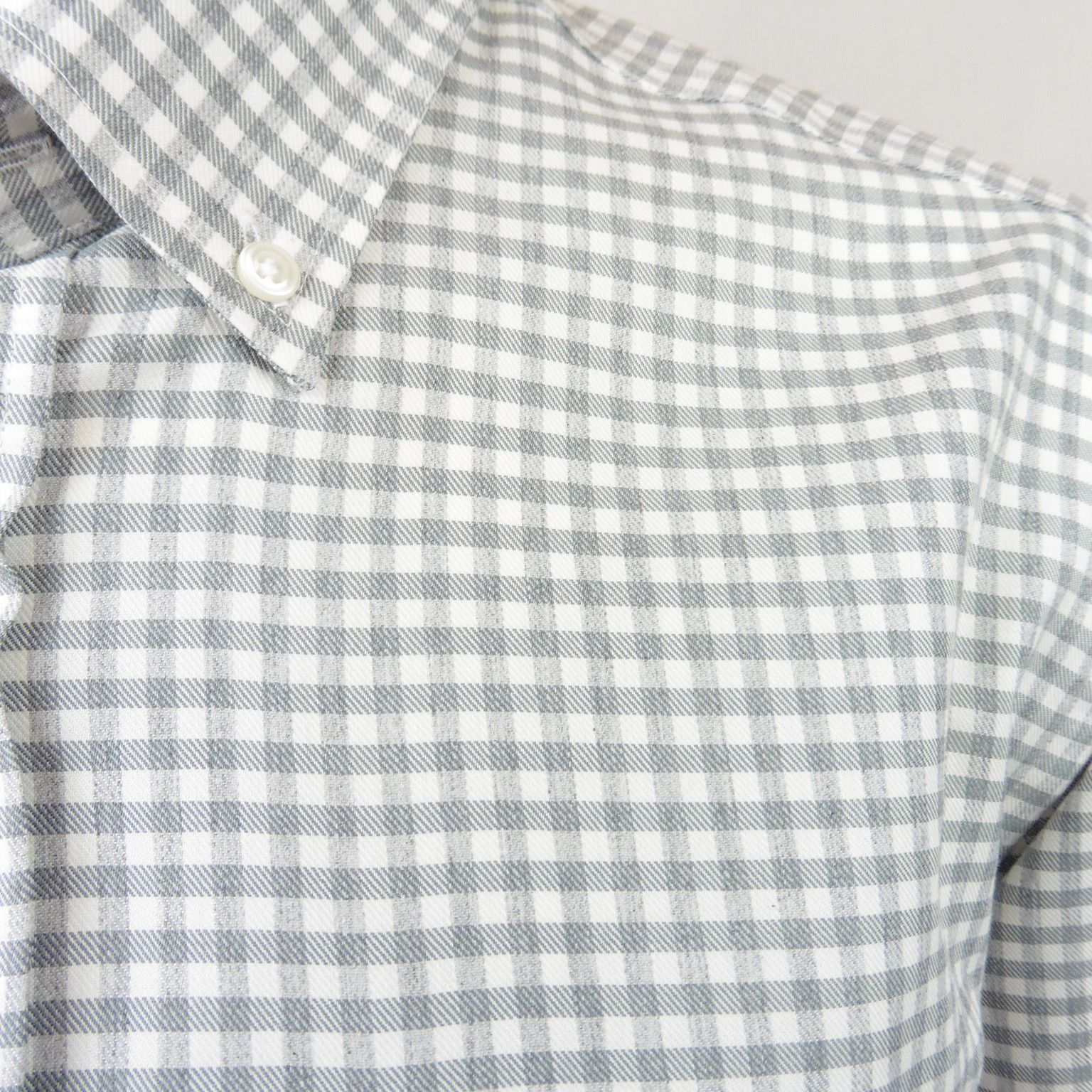 Camisa de Corsare, 70% algodón 30% poliester, de cuadros pequeños en tonos grises y blanco, botones en el cuello, con 1 bolsillo