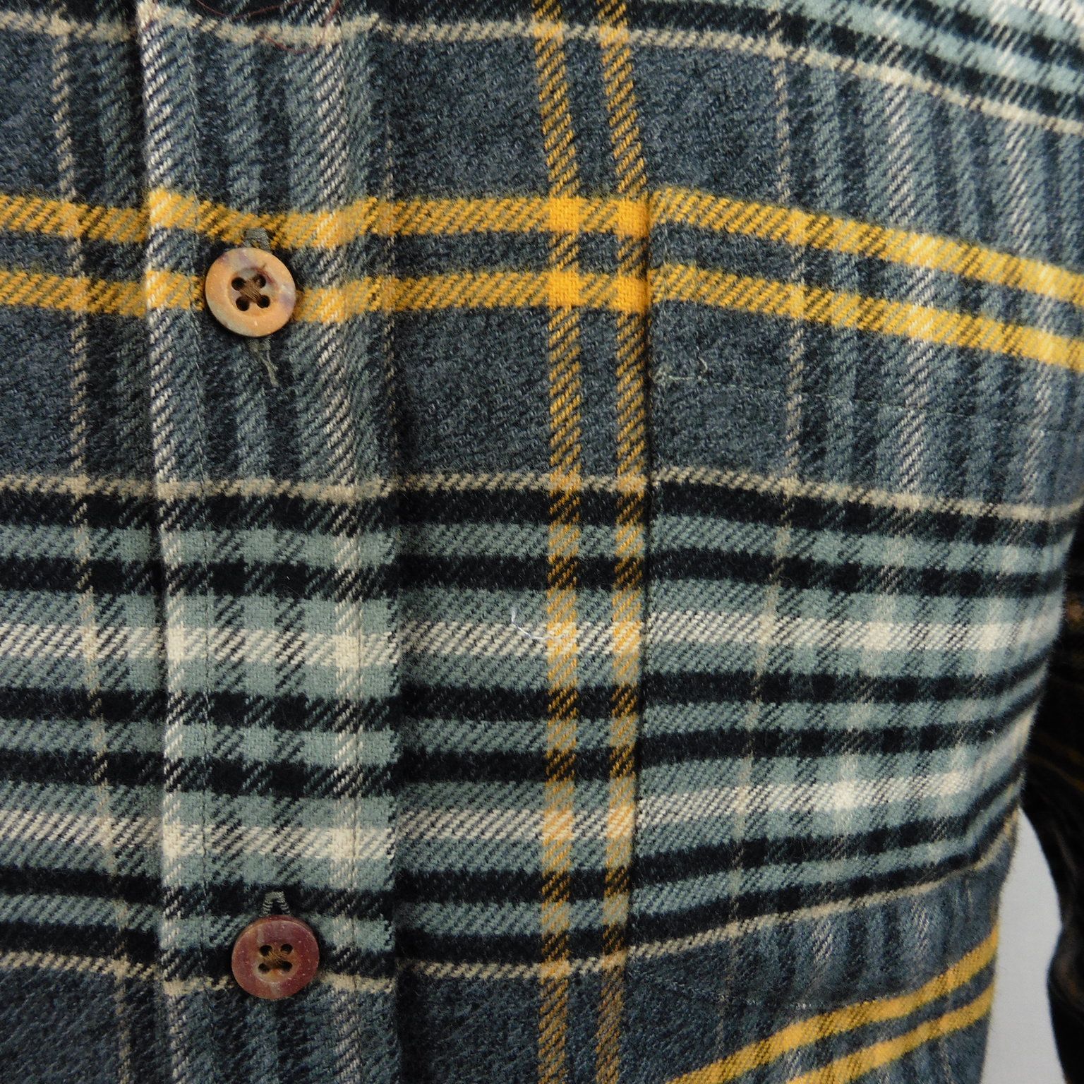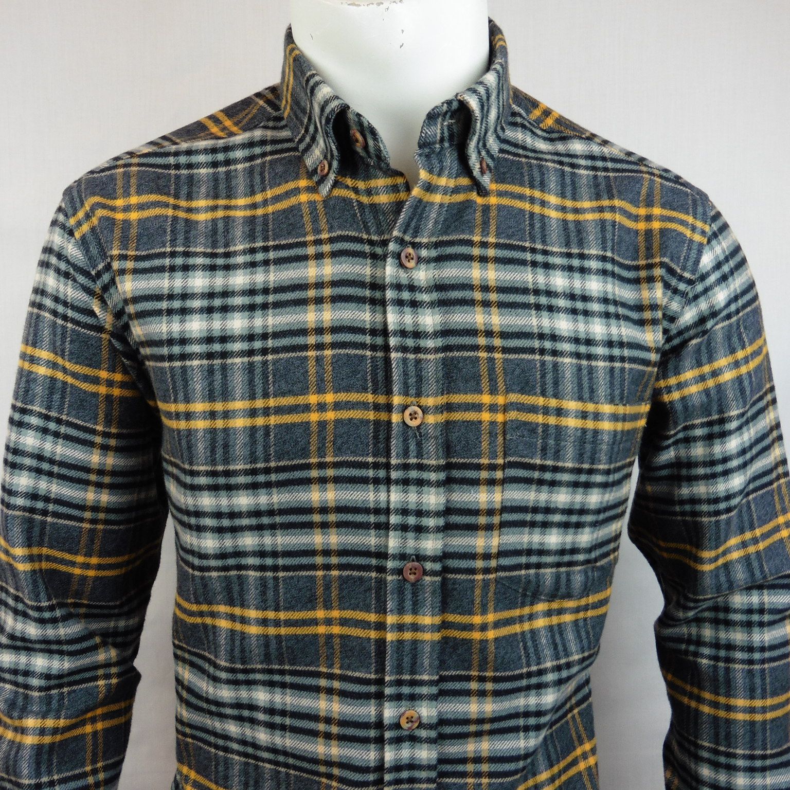 Camisa de Corsare, 100% algodón, franela, con cuadros en tonos grises y ocre, botones en el cuello, con 1 bolsillo