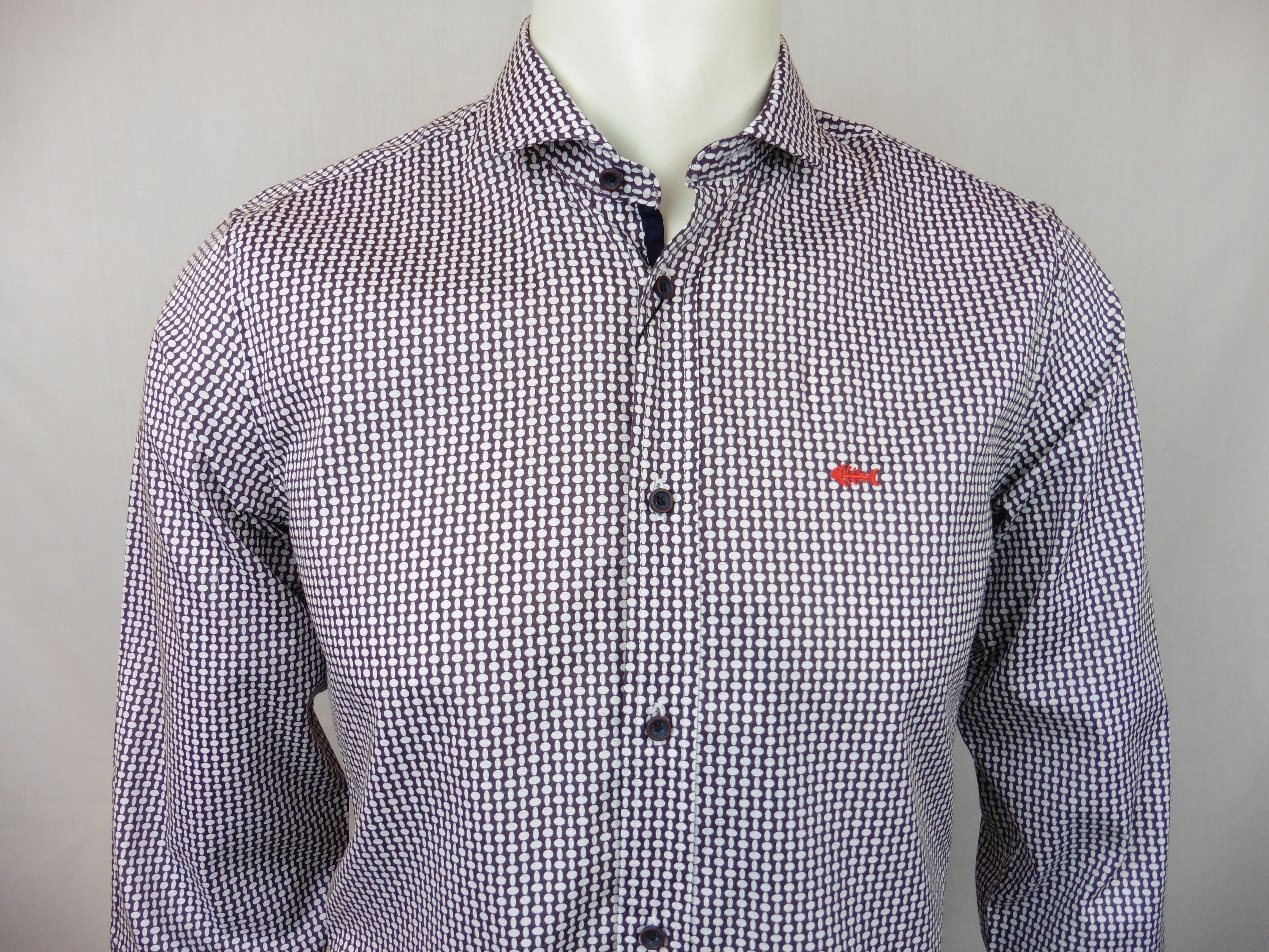 Camisa de Dark & ​​​​Fish, 97% algodón 3% spandex, en color marrón con estampado blanco