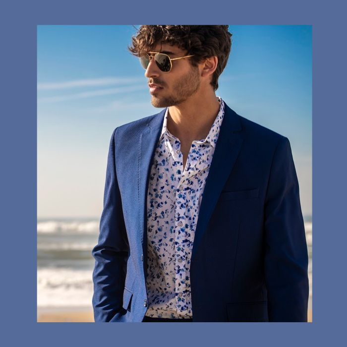 Camisa de Dos Galgos, 100% algodón, en color blanco con estampado de flores en tonos azules