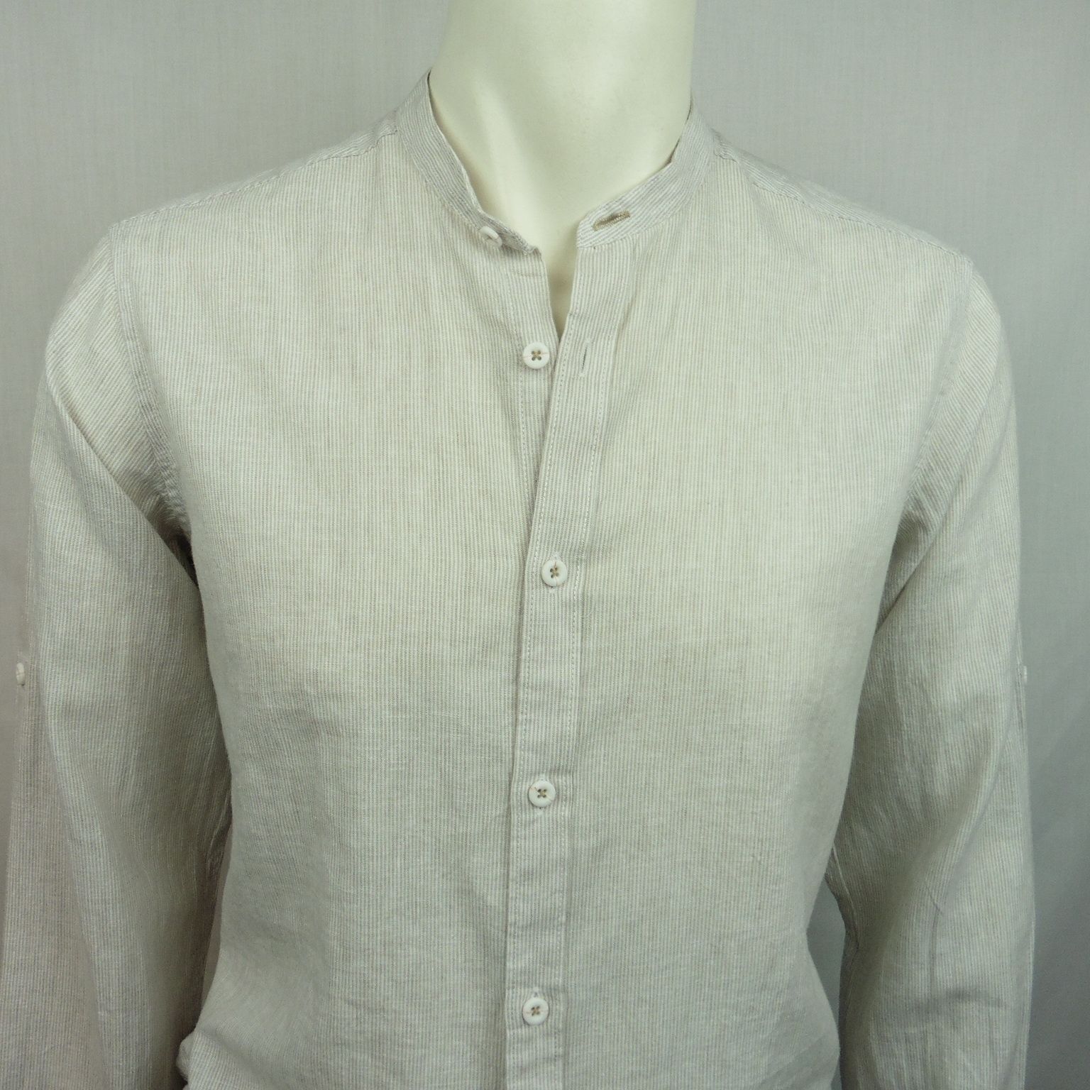 Camisa de Dos Galgos, 55% lino 45% algodón, cuello maho, mil rayas en tonos beige y blanco