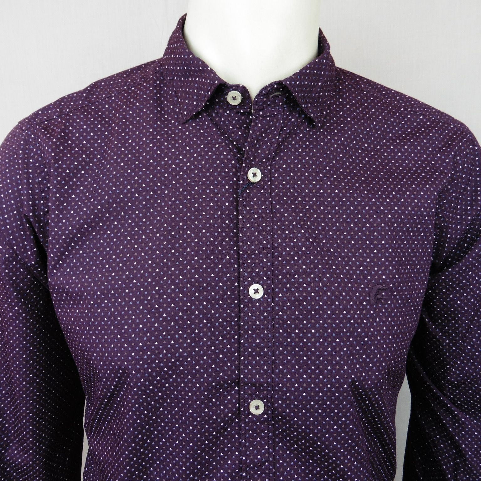 Camisa de Dos Galgos, 100% algodón, en color berenjena con estampado de mini triágulos en tonos rosa, gris y blanco