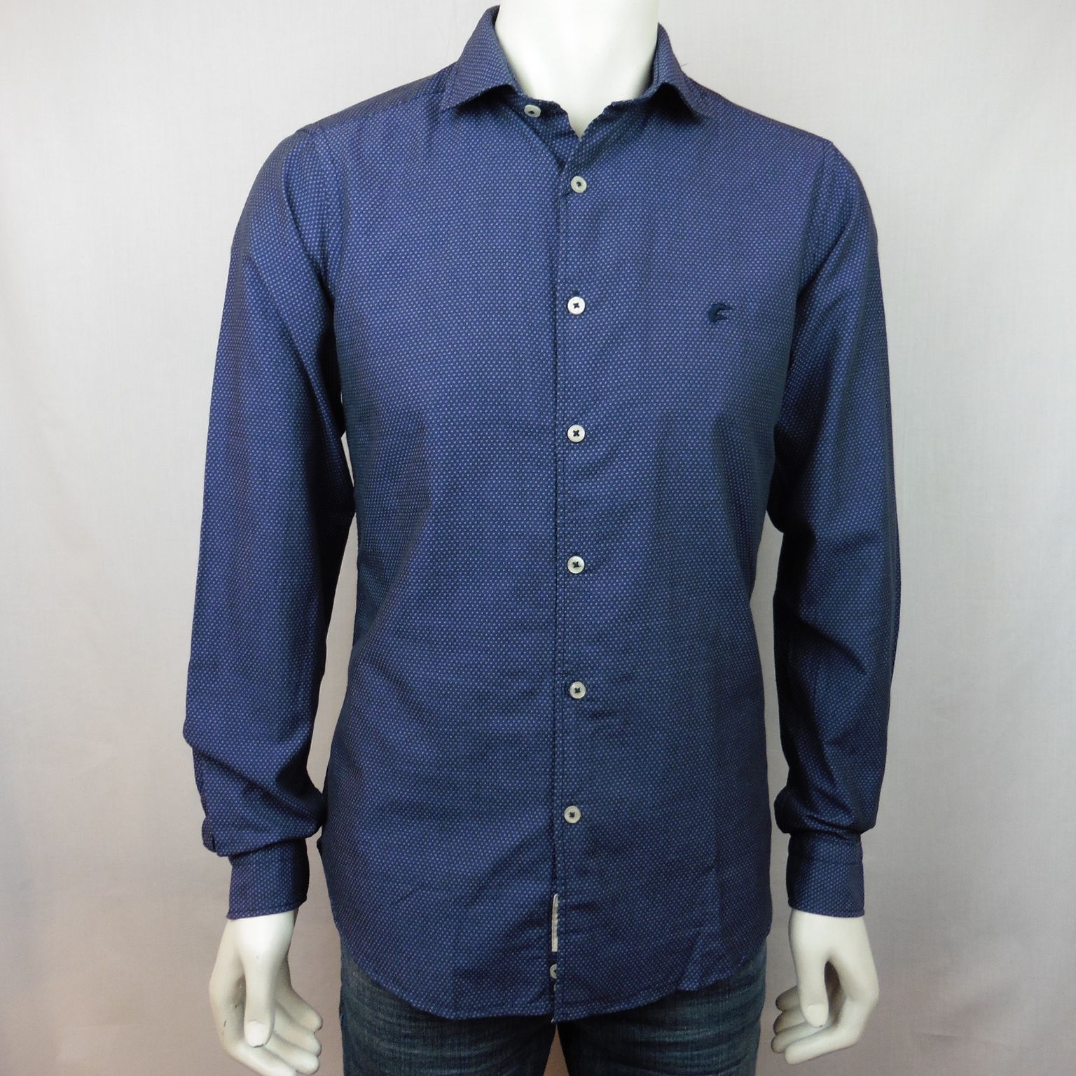 Camisa de Dos Galgos, 100% algodón, en color azul con estampado de mini guiones blancos