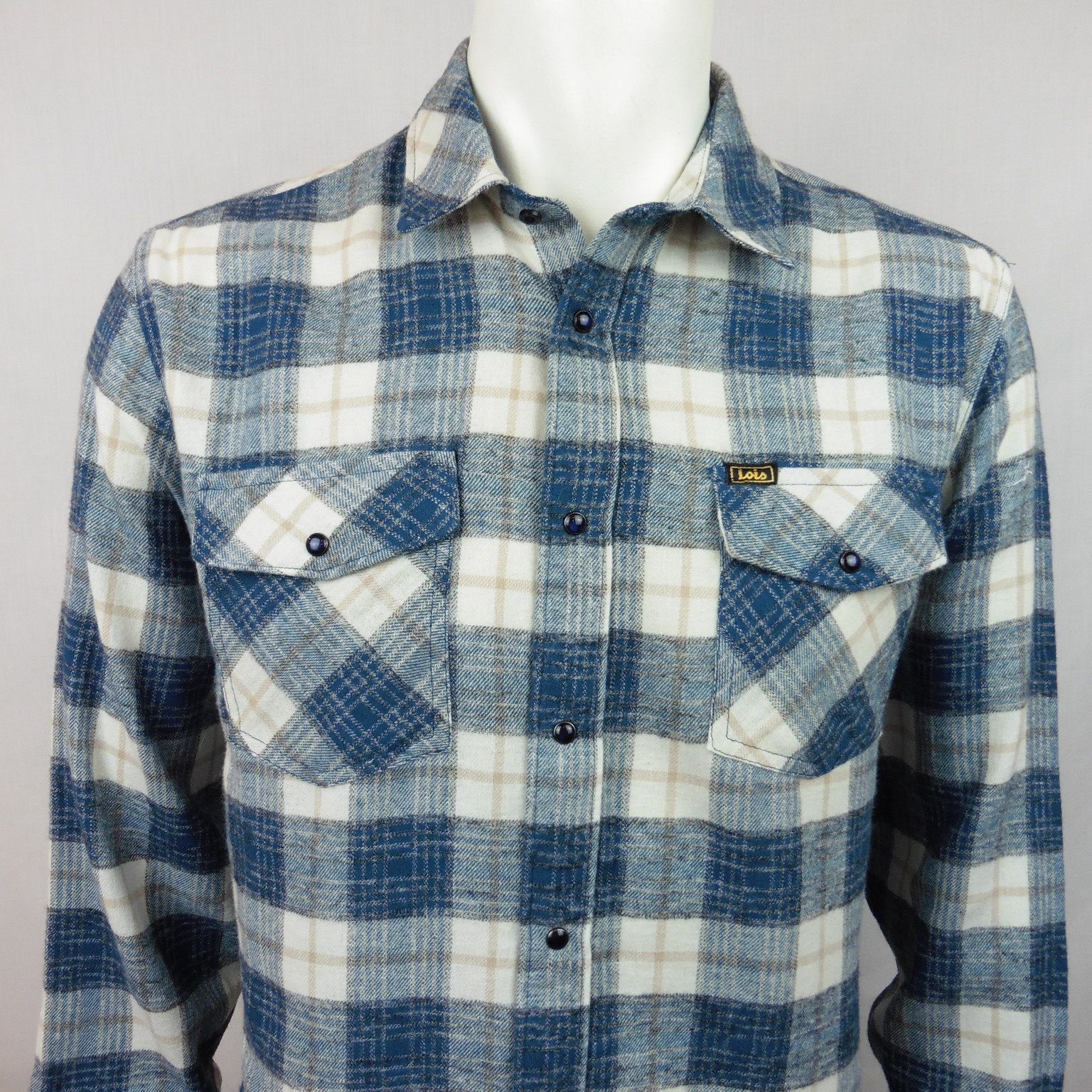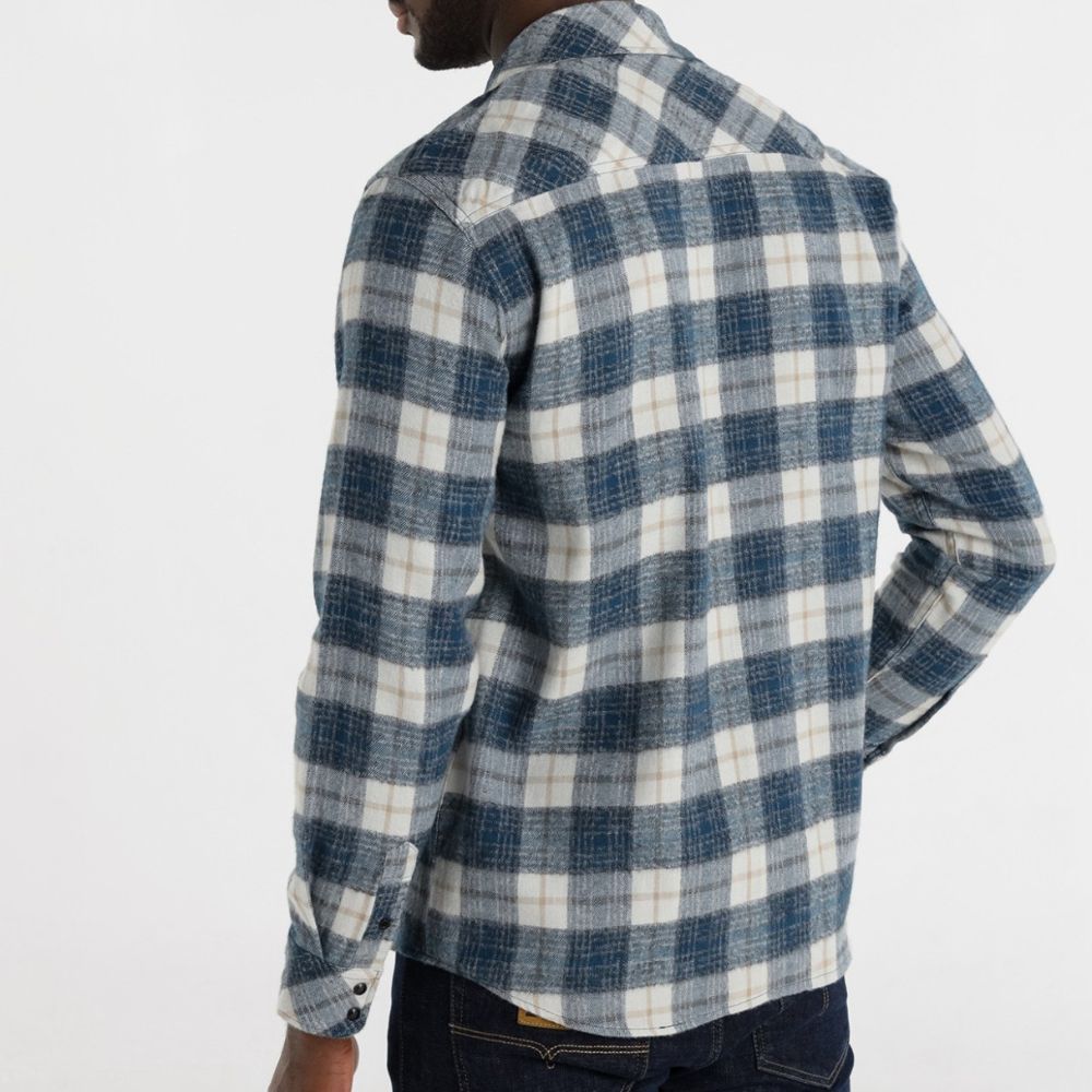 Camisa de Lois, 100% algodón, de viella en cuadros en tonos azules y crudo, dos bolsillos con tapeta y botones de cleck