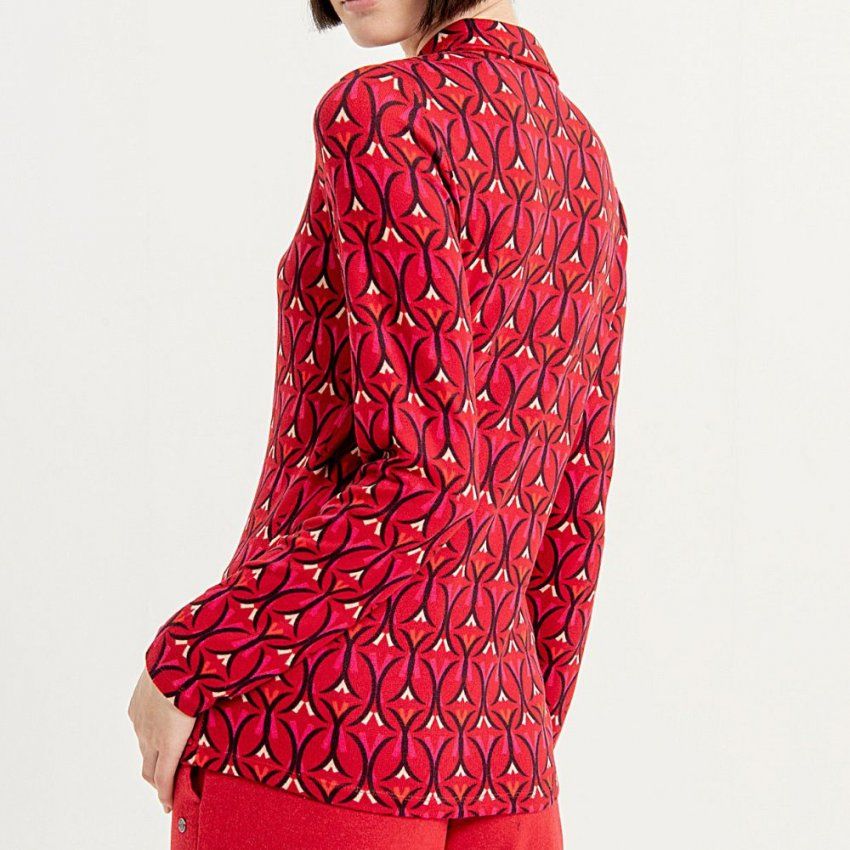 Camisa de punto de Surkana, 95% viscosa ecovero 5% elastano, en color naranja con estampado