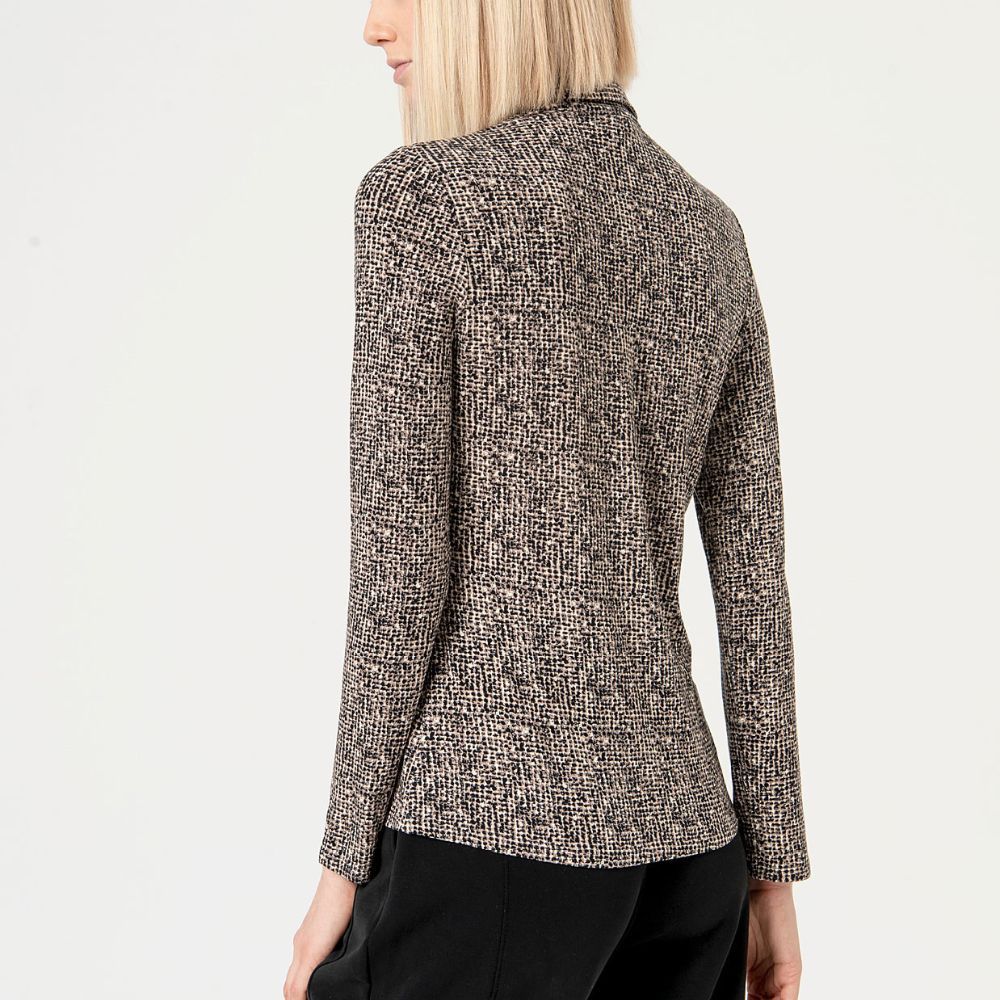 Camisa de punto de Surkana, 95% viscosa ecovero 5% elastano, con mini estampado en tonos crudo, beige y negro