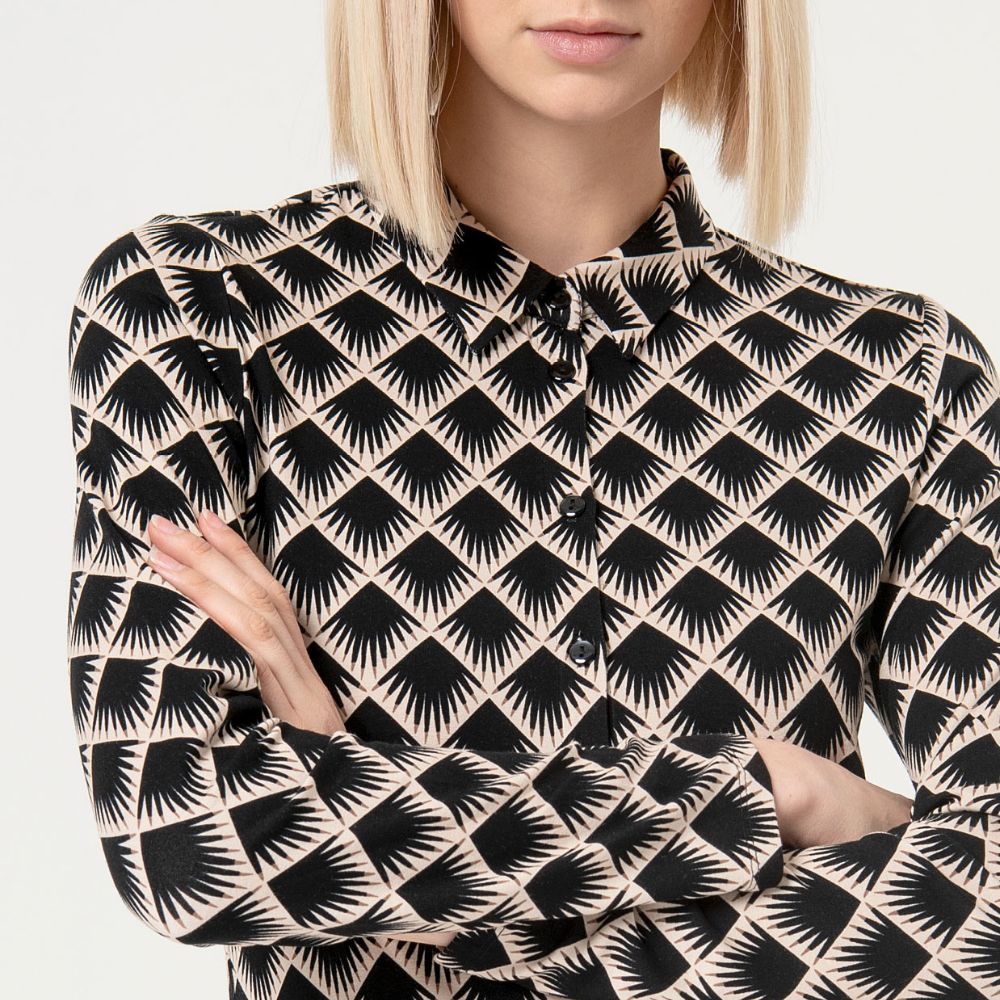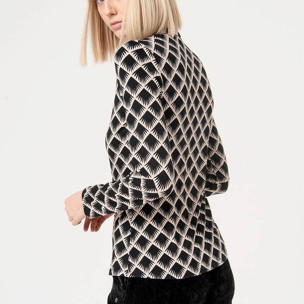 Camisa de punto de Surkana, 95% viscosa ecovero 5% elastano, en color crudo con estampado grande negro