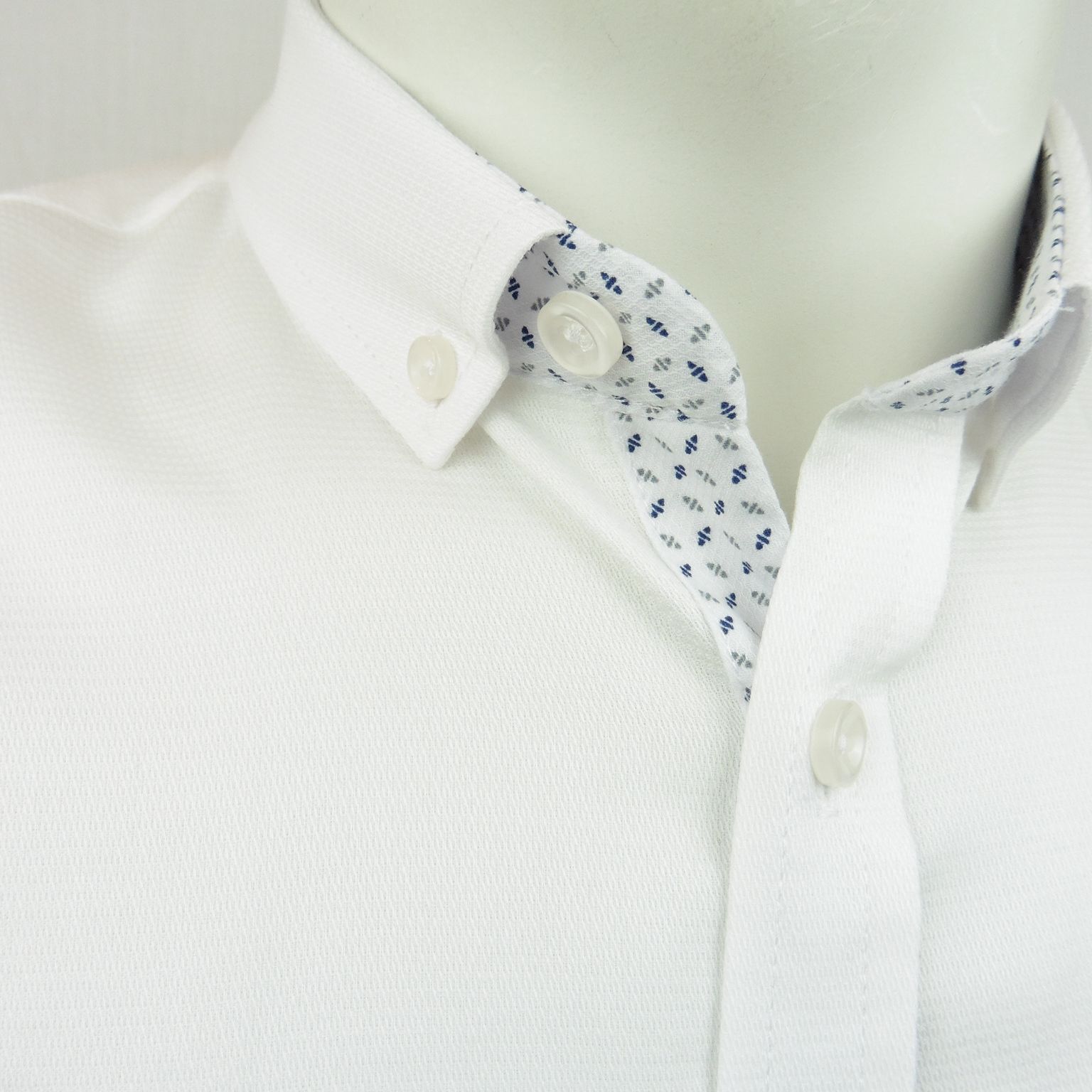 al tono en relieve, interior de cuello, tapeta y puños en estampado azul