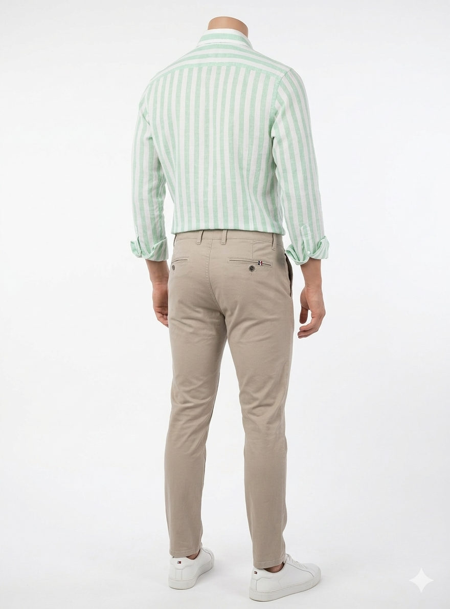 Camisa de Yellow Skin, 100% algodón, con rayas amarillas y verdes