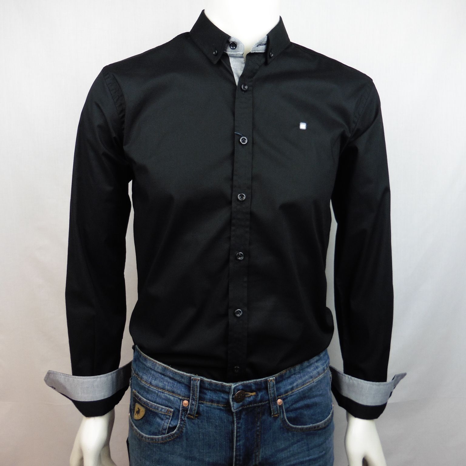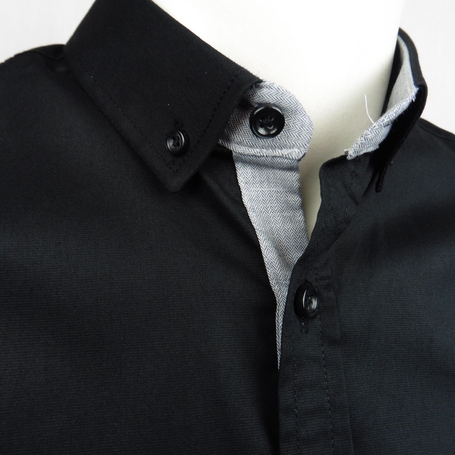 Camisa de Yellow Skin, 64% poliéster 34% algodón 2% elastano, botones en el cuello, en negro con detalles interiores en color gris