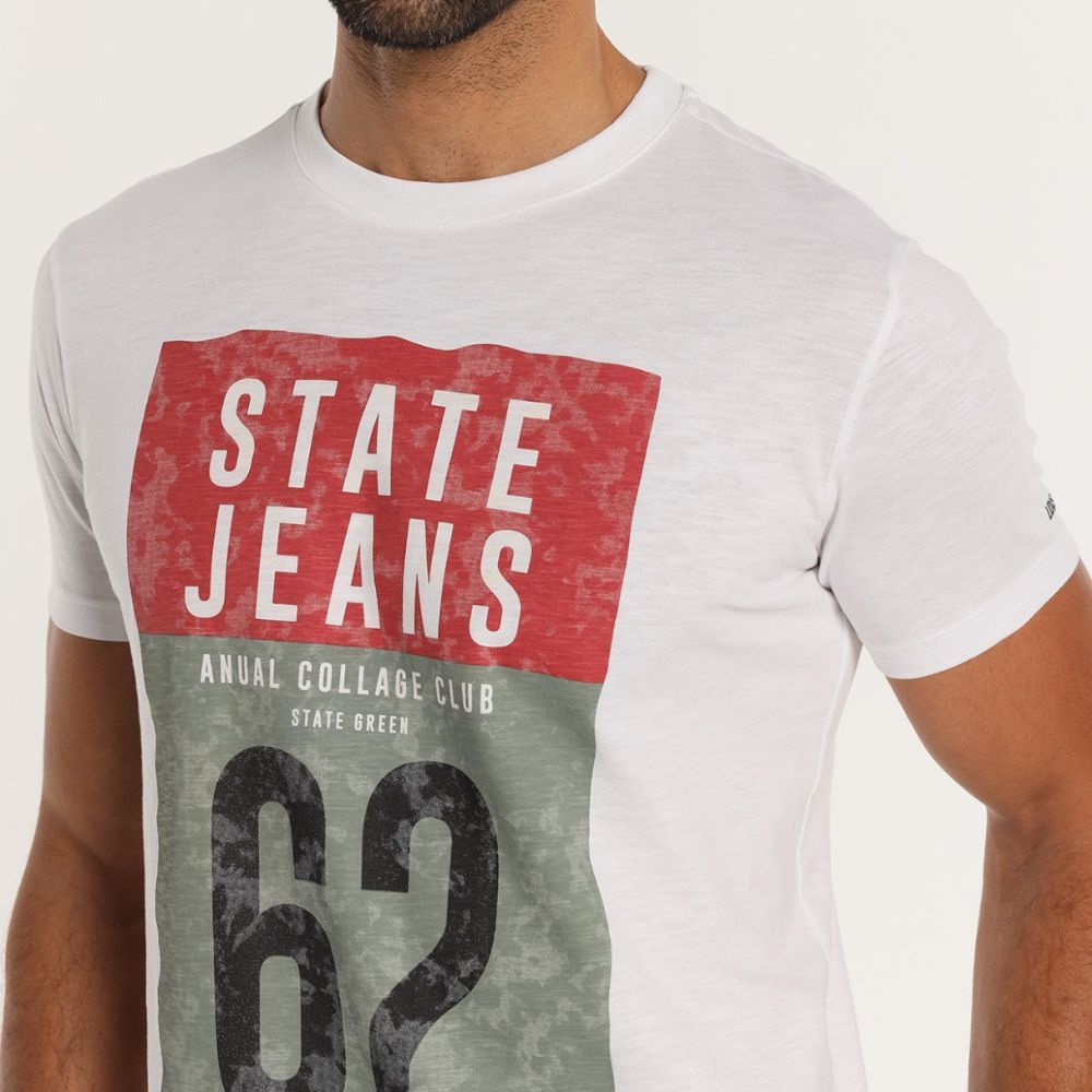 Camiseta de Lois, 100% algodón, en color blanco con cartel delante en tonos verde y rojo con letras y números grandes