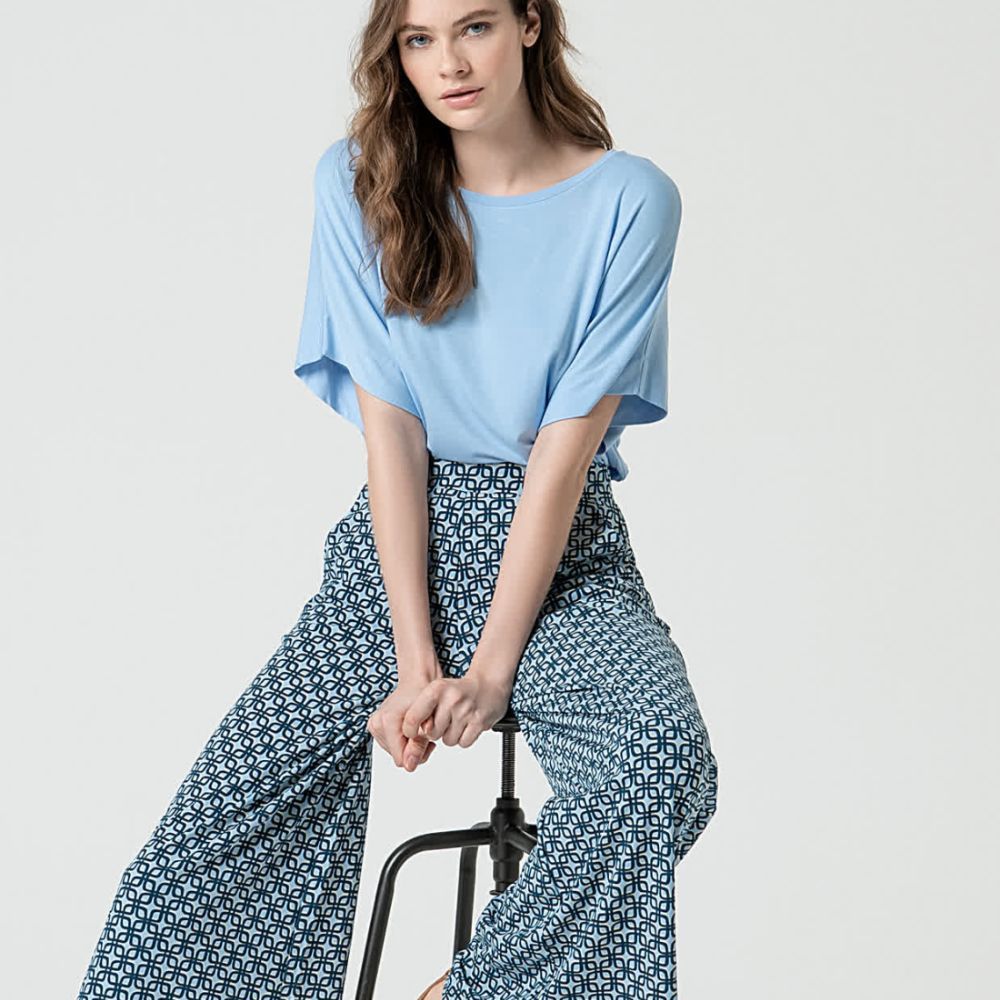 Camiseta de Surkana, 95% viscosa de bambú 5% elastano, oversize, manga ranglan caída, en color celeste