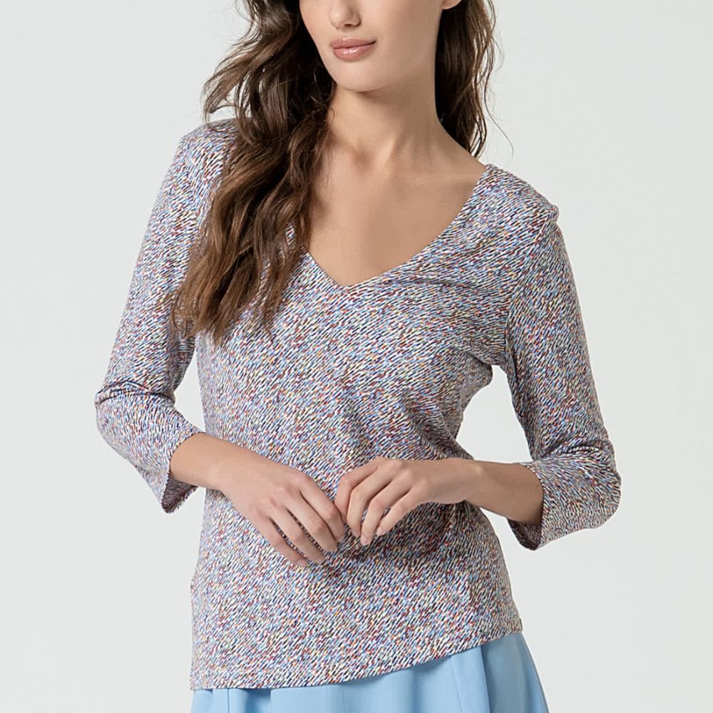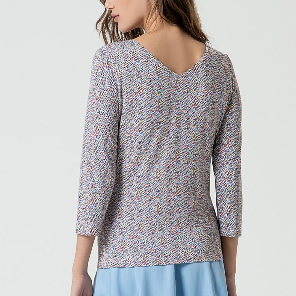 Camiseta de Surkana, 95% viscosa aloe vera modal 5% elastano, con manga al codo y escotes pico, con estampado de rayotes multi color