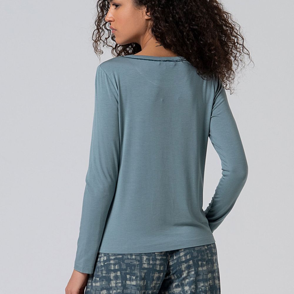 Camiseta de Surkana, 95% viscosa de bambú 5% elastano, en color verde con adorno en cuello