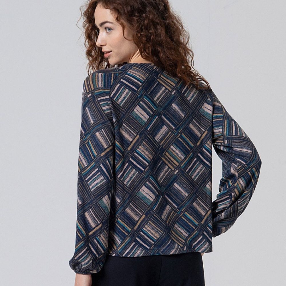Camiseta de Surkana, 50% poliéster reciclado 45% poliéster 5% elastano, de punto de cálido, cuello redondo con botón, manga ranglan, manga con puño, estampado vertical diagonal en tonos azules, gris y beige