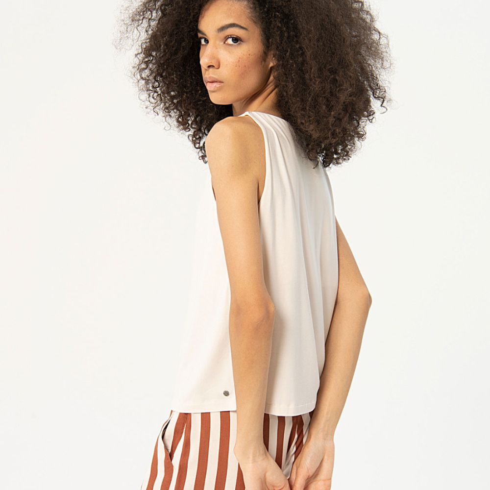 Camiseta de Surkana, 95% viscosa de bambú 5% elastano, sin mangas y escote barca, en color blanco