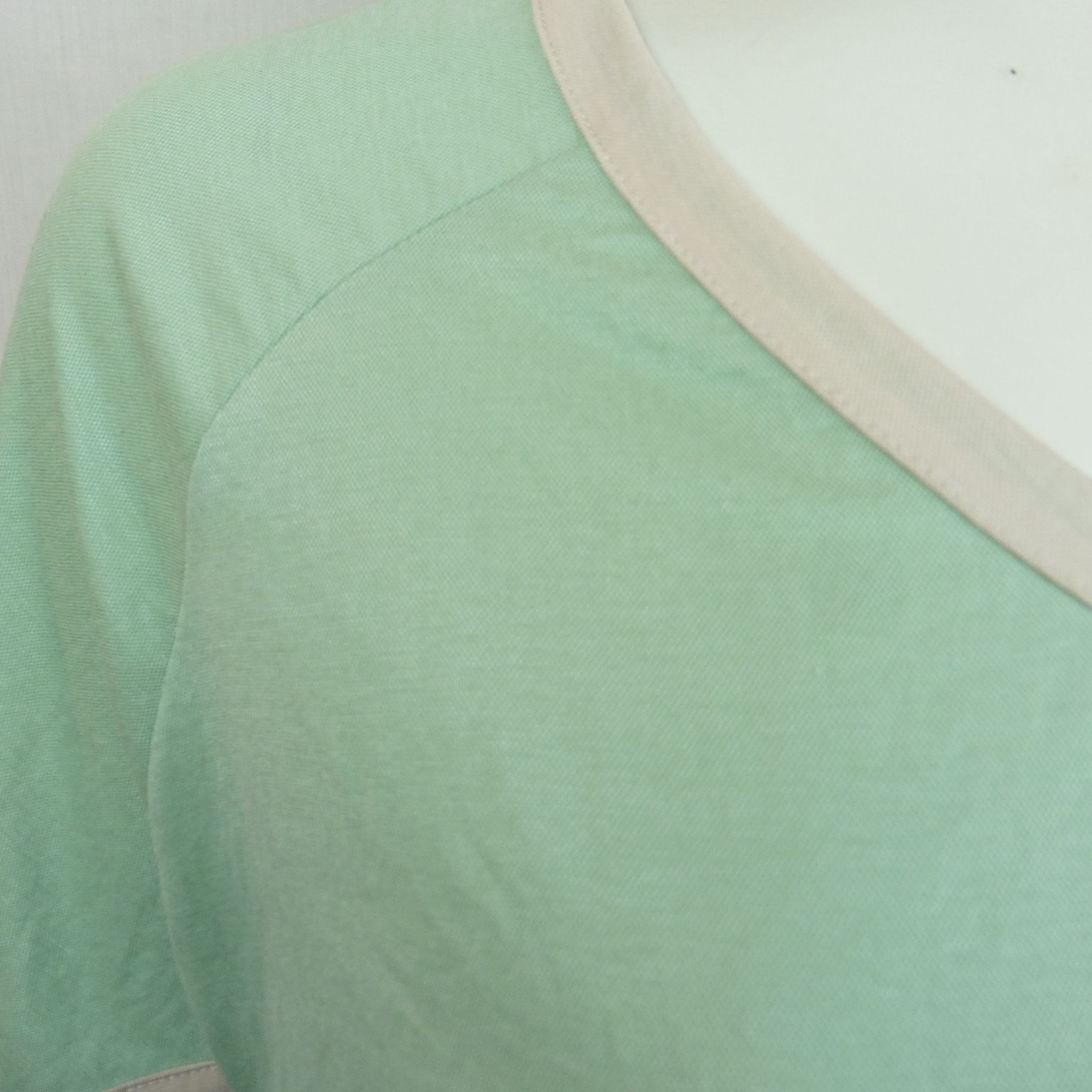 Camiseta de WNT Collection, 55% viscosa 45% nailon, escote pico, oversize tipo poncho con manga ranglan, en color verde agua