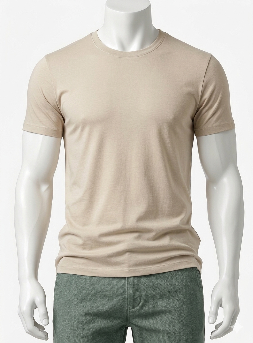 Camiseta de Dos Galgos, 95% algodón 5% elastomero, cuello redondo, en color arena