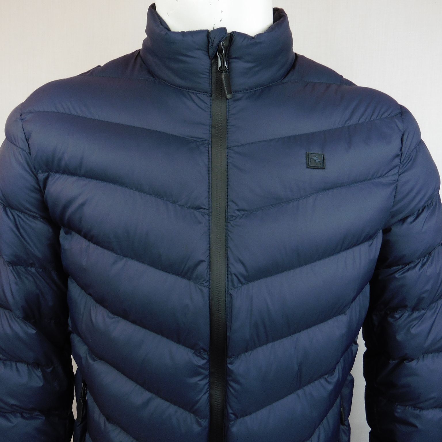 Cazadora de Dos Galgos, 100% poliamida, acolchado suave,  dos bolsillos con cremallera y 2 bolsillos interiores, en color azul marino
