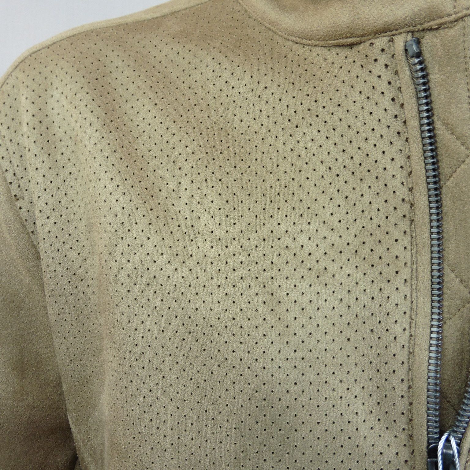 Cazadora de Dos Galgos, 100% poliéster, en color camel, antelina lisa combinada con antelina perforada, 2 bolsillos inclinados, puño con cleck