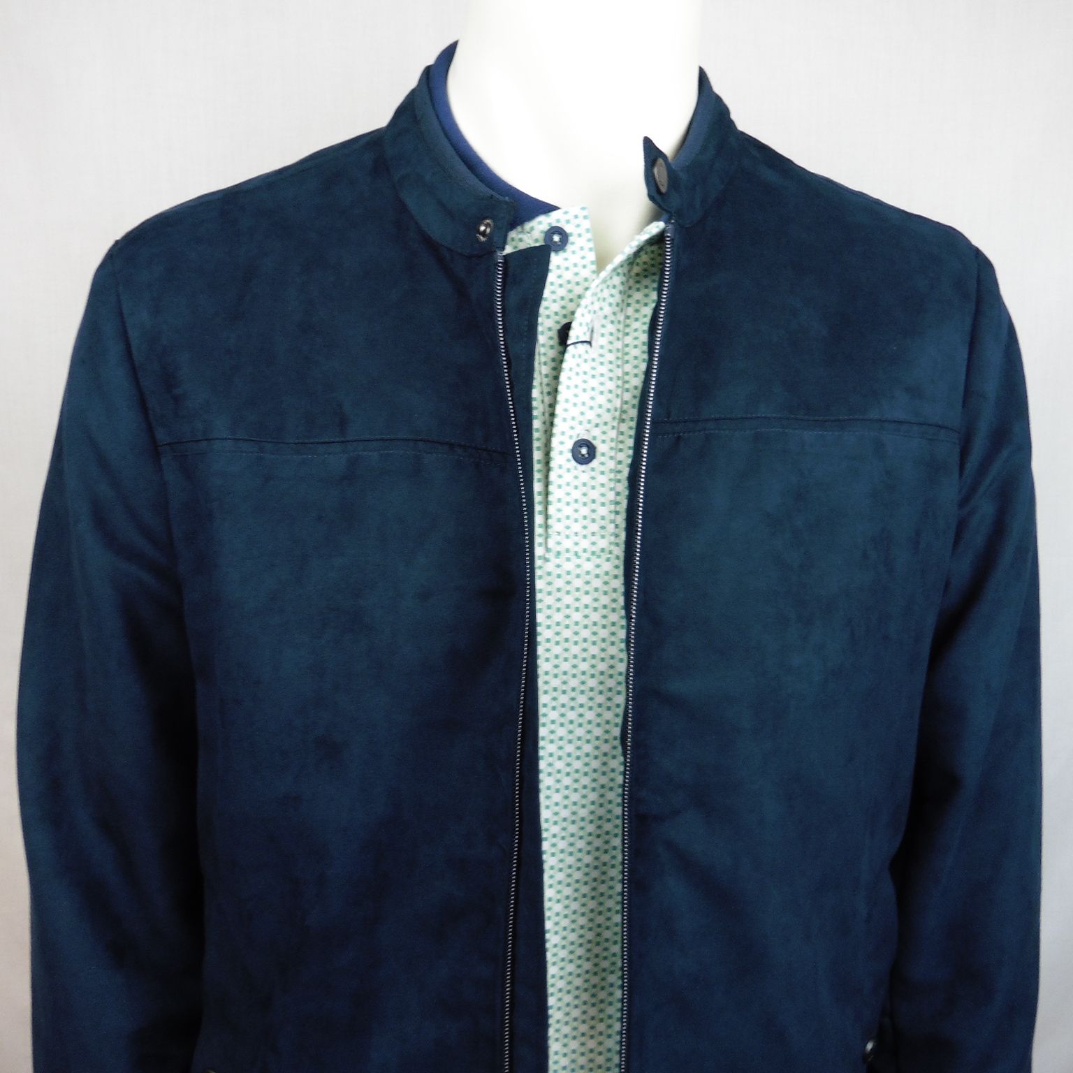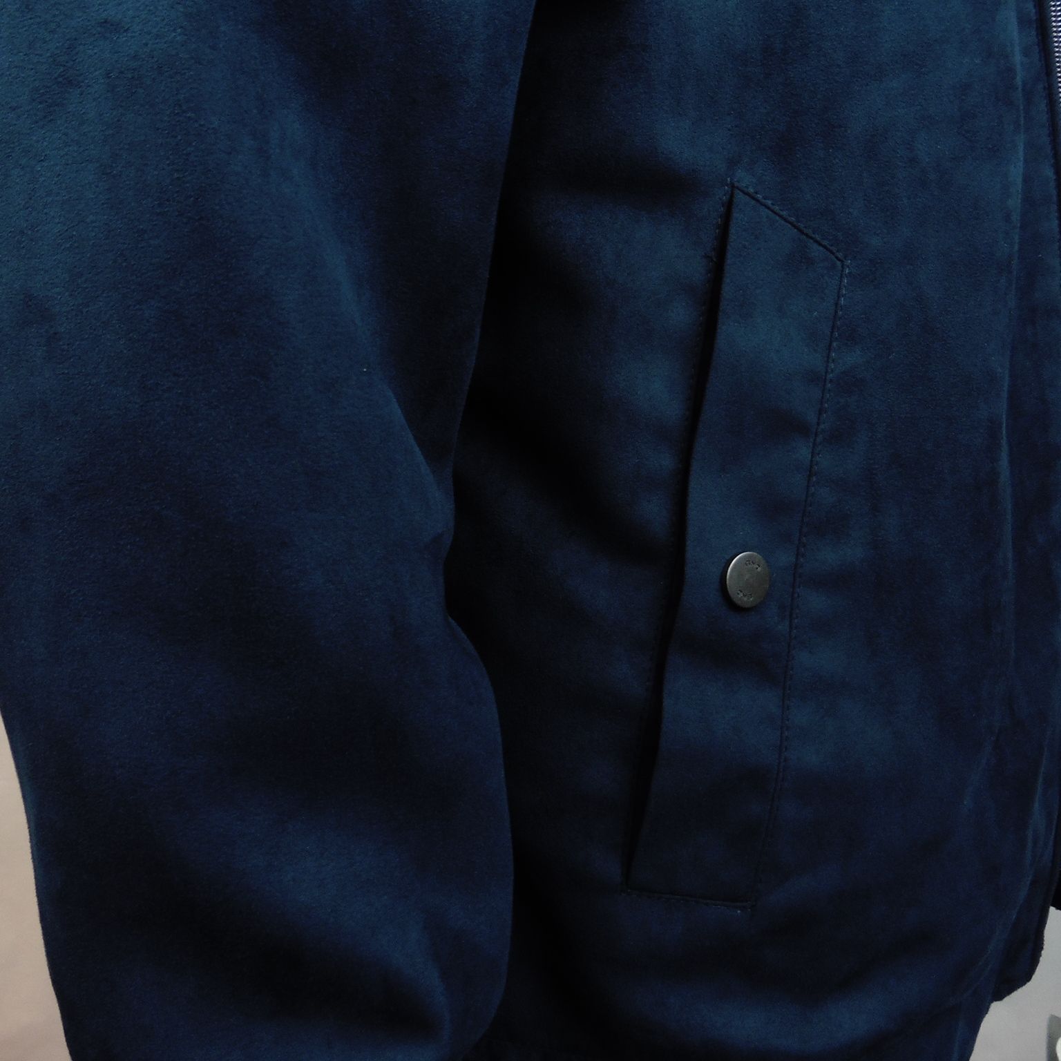 Cazadora de Gendive, 100% poliéster, de antelina en color azul marino, 2 bolsillos inclinados con botón cleck, puño con cleck