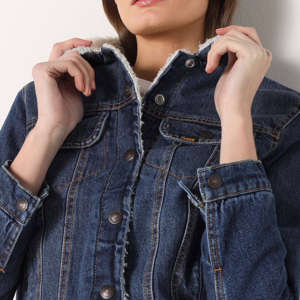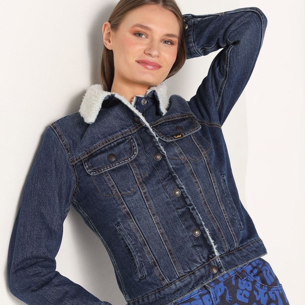 Cazadora vaquera de Lois, 100% algodón, con borrego en el interior, en color azul, 2 bolsillos con tapa y dos bolsillos abajo, puños con botón
