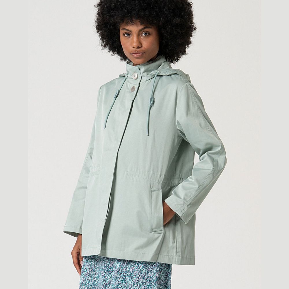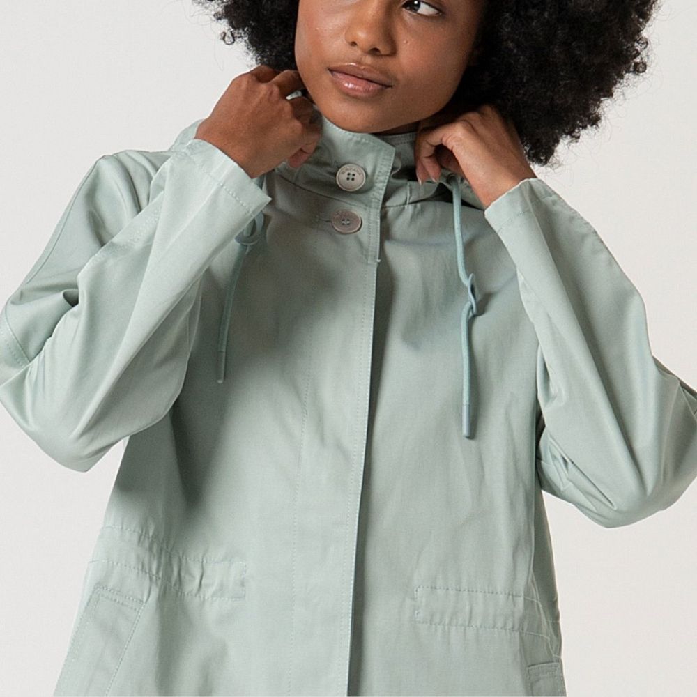 Cazadora de Surkana, 50% algodón 50% poliéster, sin acolchado, capucha desmontable, dos bolsillos externos, goma fruncible en la cintura, en color verde claro