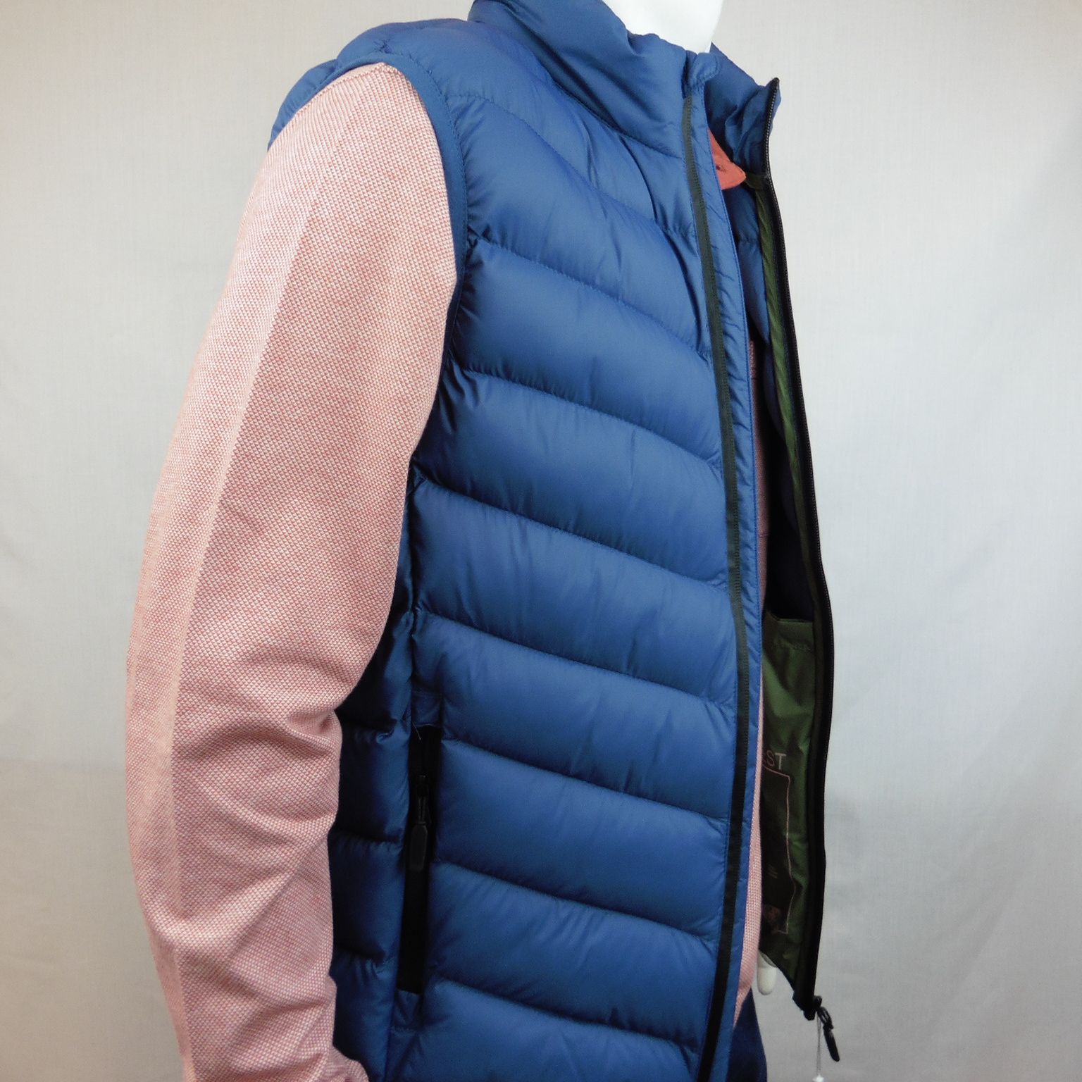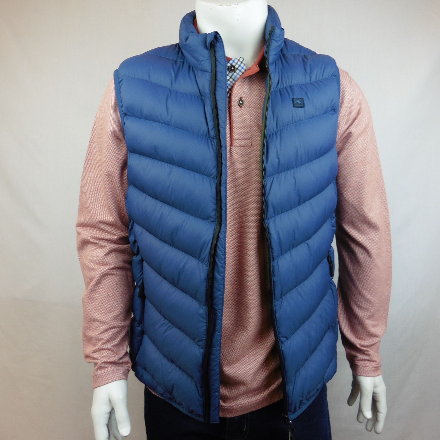 Chaleco de Dos Galgos, 100% poliamida, con acolchado suave, 2 bolsillos con cremallera y dos bolsillos interiores, en color azul con cremalleras negras
