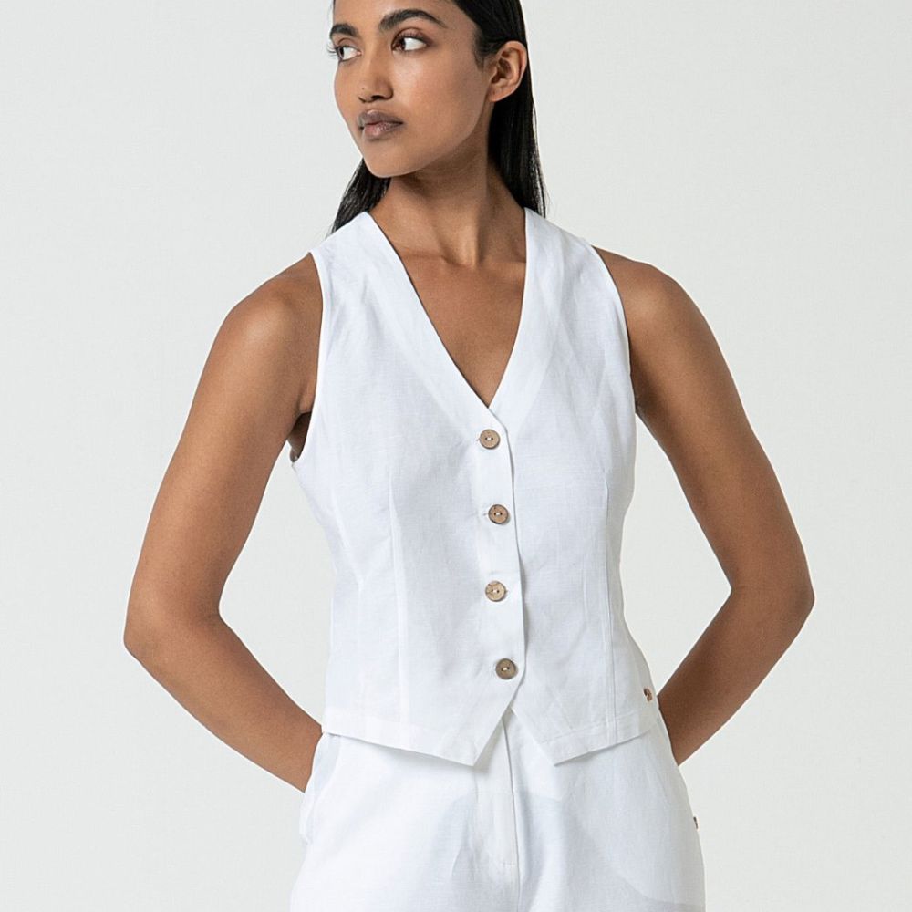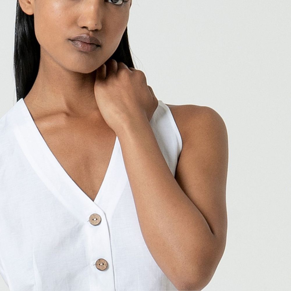 Chaleco de Surkana , 70% viscosa 30% lino, entallado, cuatro botones, en color blanco