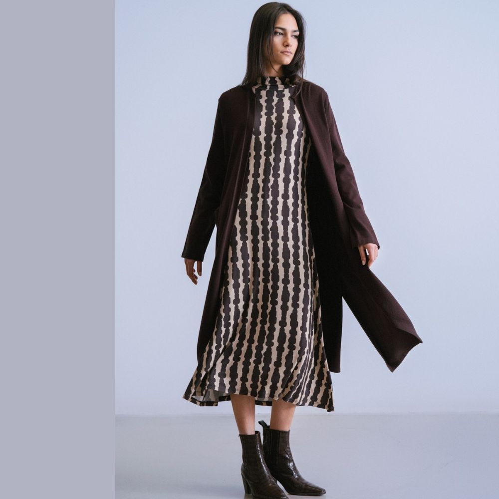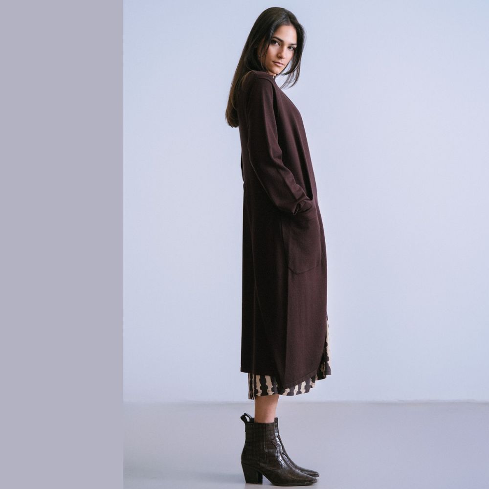 Chaqueta larga de WNT Collection, 75% viscosa 25% poliamida, dos bolsillos grandes, parte trasera cortada en cintura con dos aberturas, en color marrón