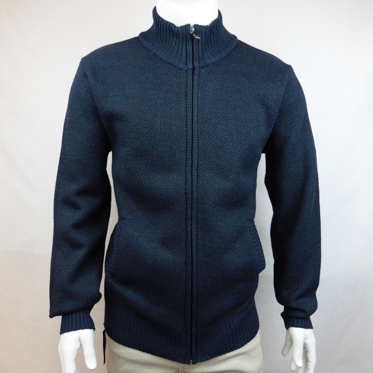 Chaqueta punto de Dos Galgos, 100% poliéster, cuello semi cisne con cremallera, forro interior cálido, 2 bolsillos, en color azul marino