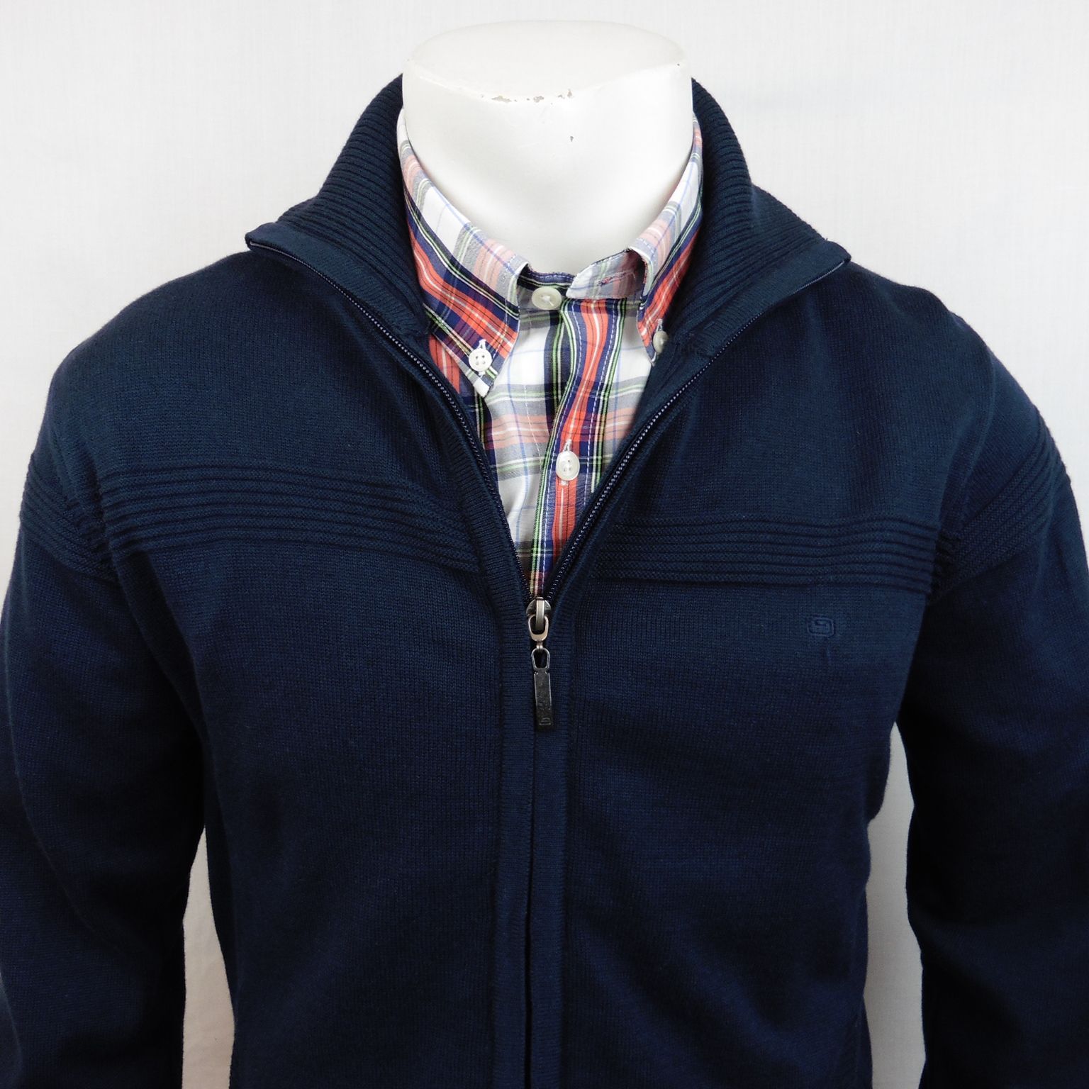 Chaqueta punto de G54, 100% algodón, cremallera hasta arriba, dos bolsillos, cenefa en relieve al tono en pecho y hombro, en color azul marino