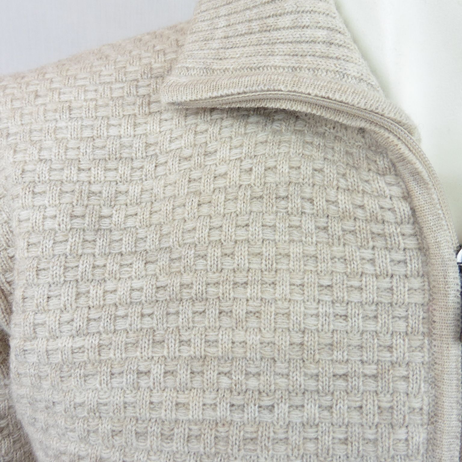 Chaqueta punto de Tomé, 70% acrílico 30% lana, en color beige haciendo dibujo entrelazado, dos bolsillos inclinados