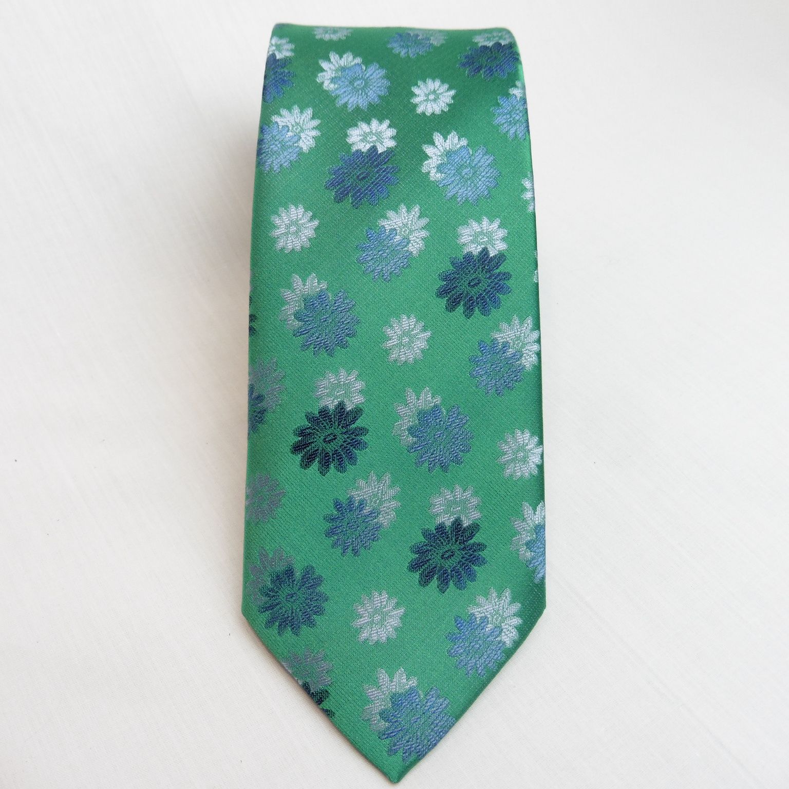 Corbata de Cencibel, 100% poliéster, pala de 7 centímetros, en color verde con flores grises