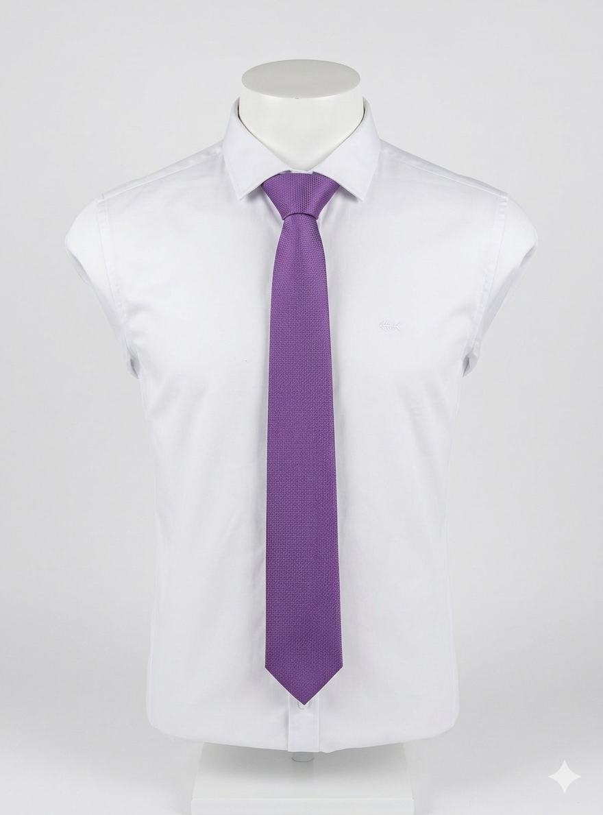 Corbata de Cencibel, 100% poliéster, pala de 7 centímetros, en color lila con mini dibujo al tono