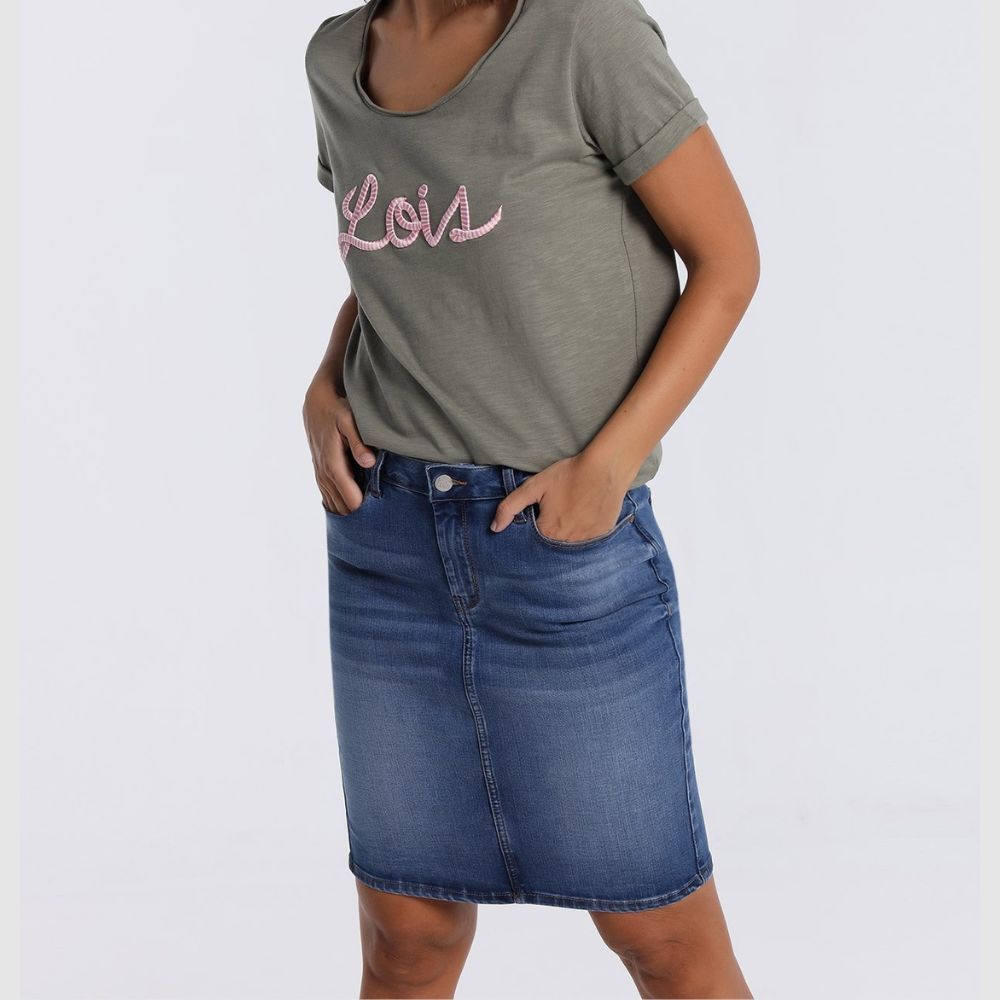 Falda vaquera de Lois, 98% algodón 2% elastano, entubada con corte detrás