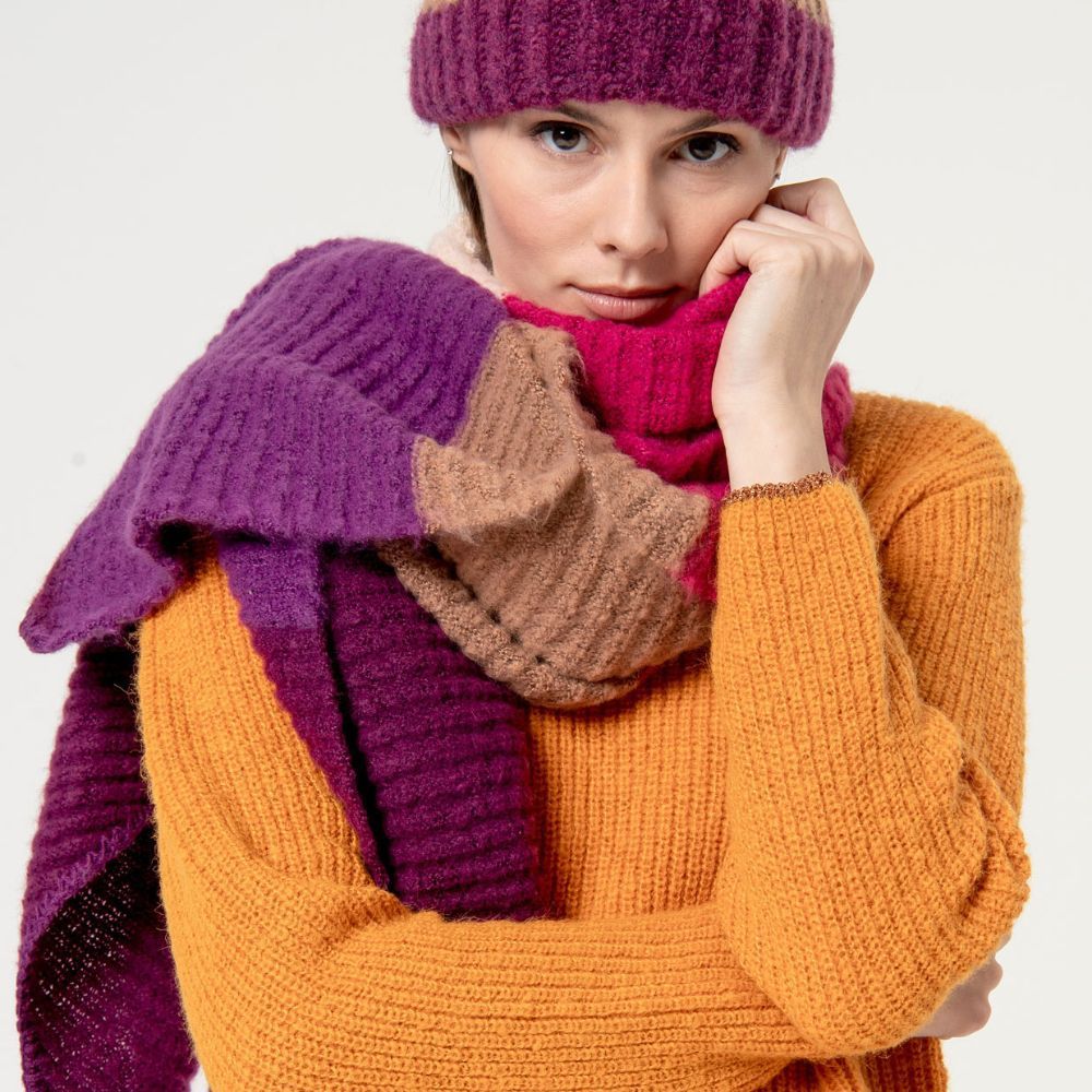 Foulard grueso de Surkana, 50% poliéster 50% poliéster reciclado, multicolor en tonos rosas, morado y marrón claro