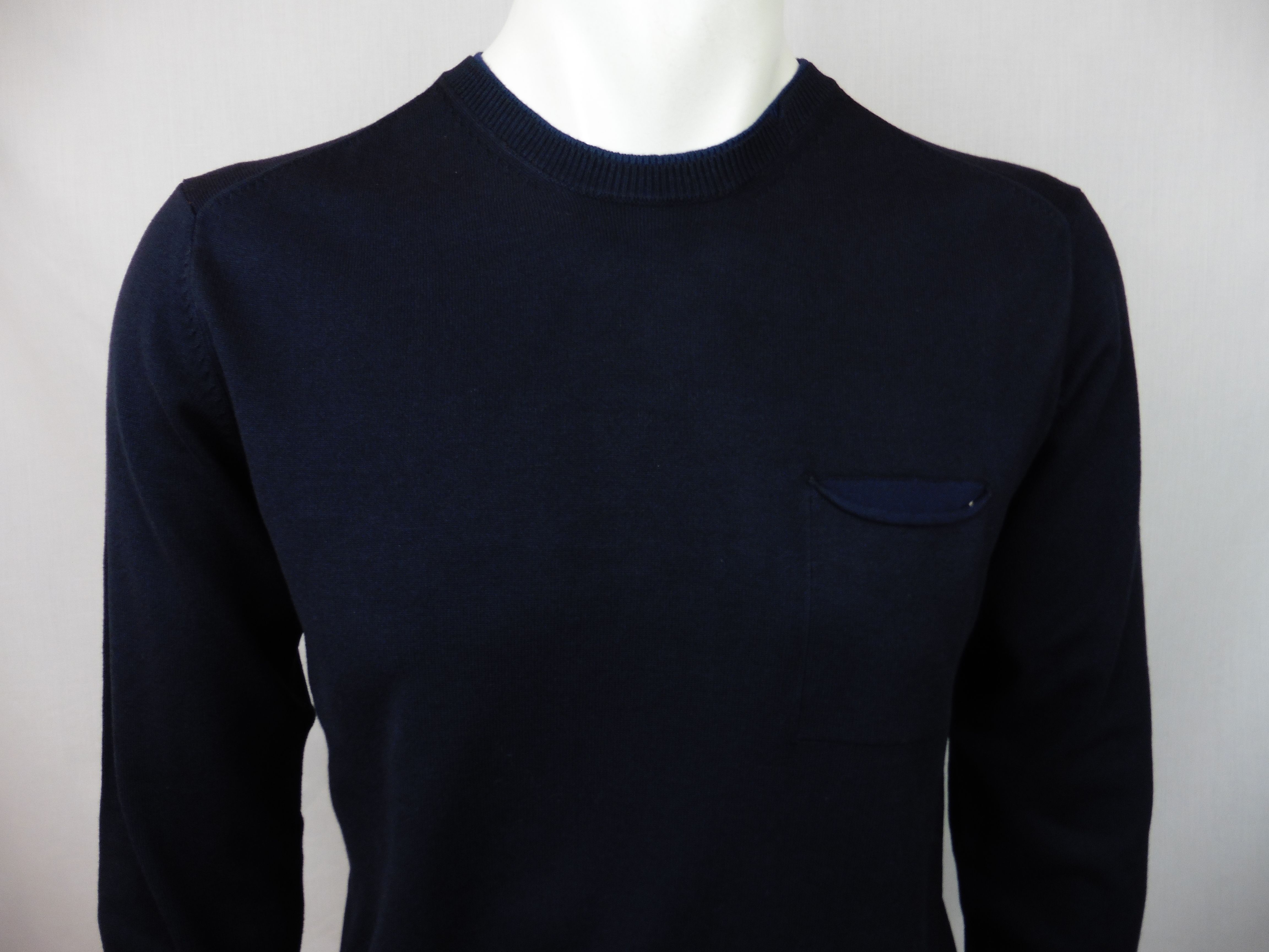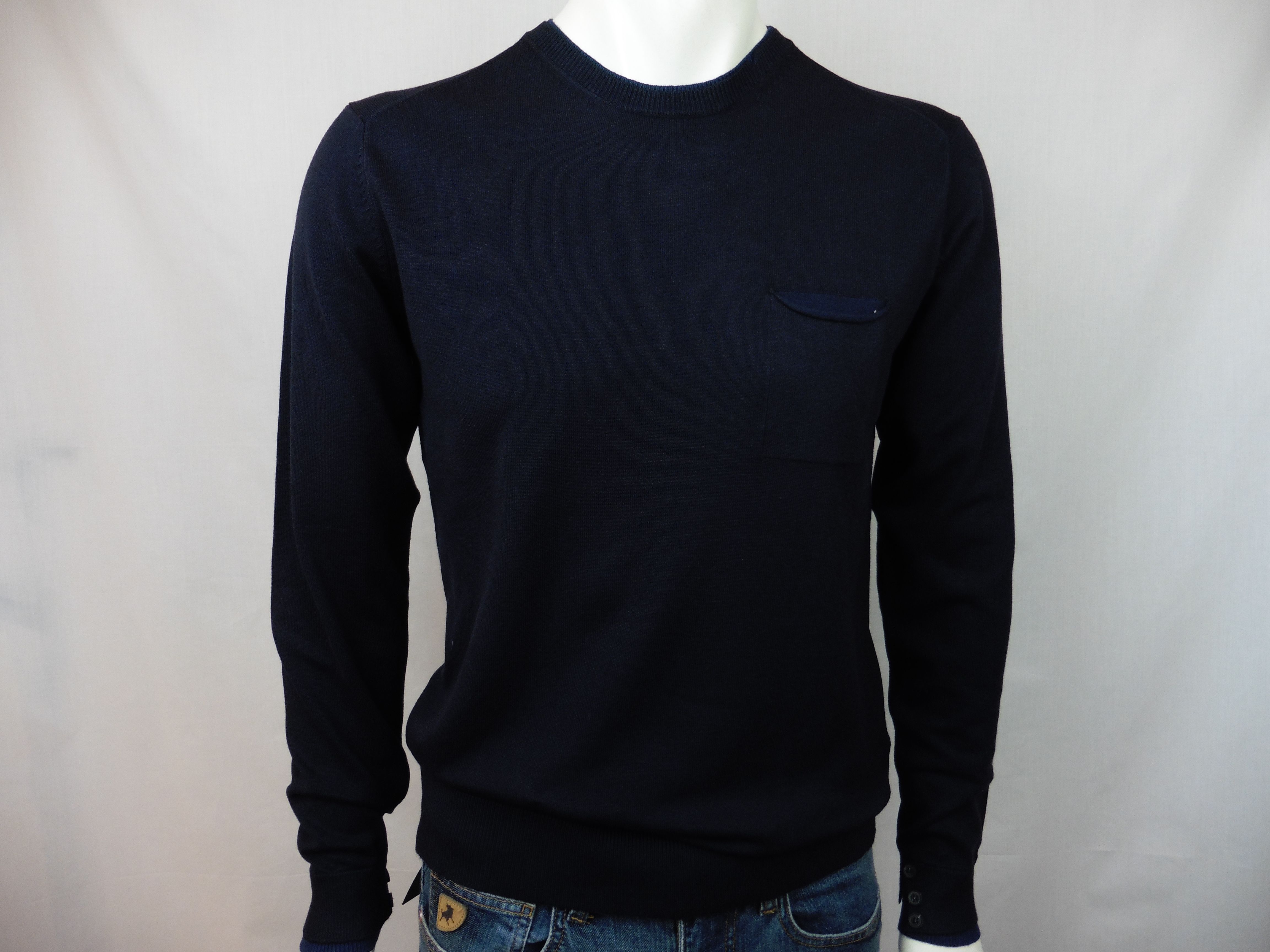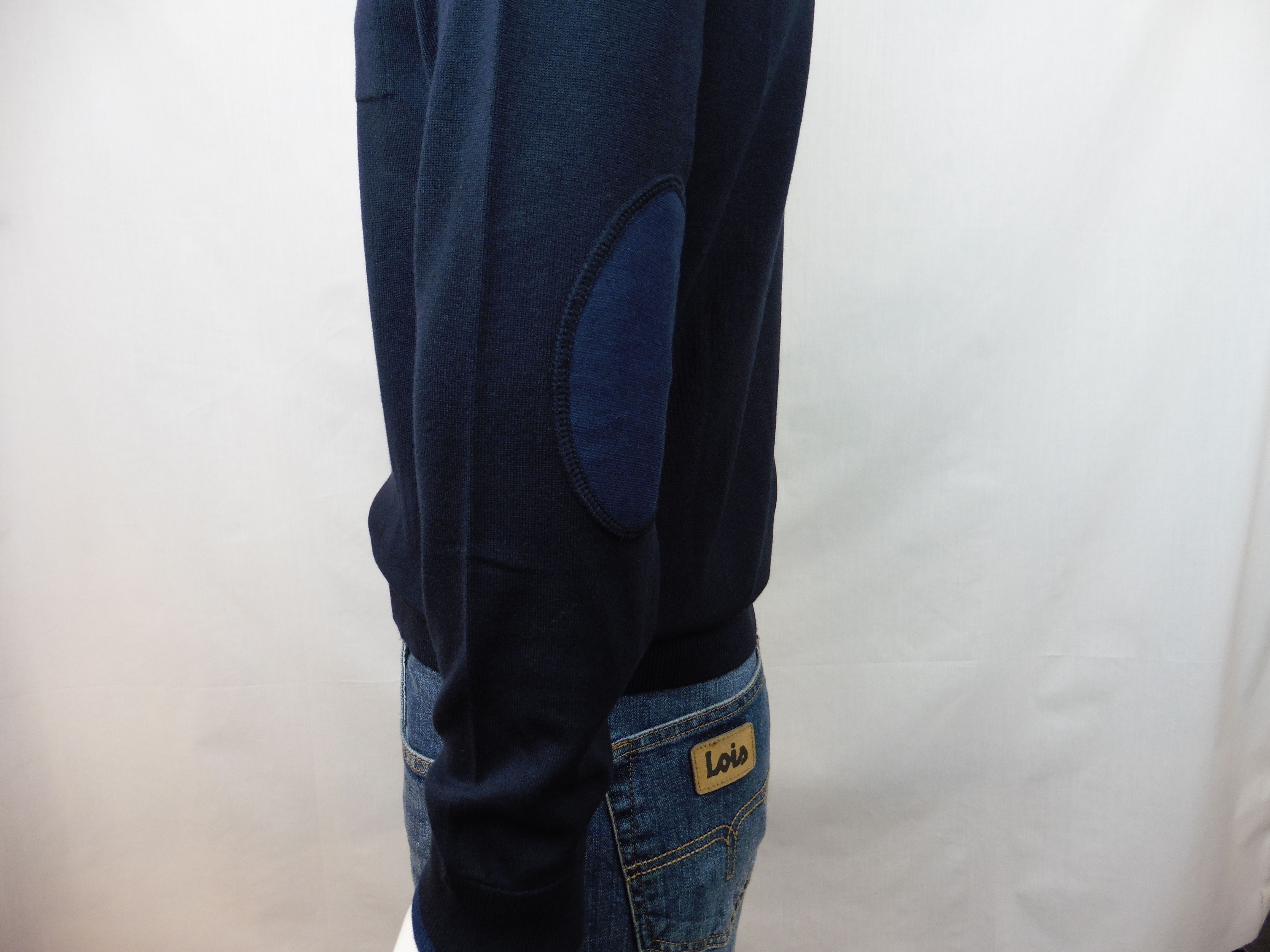 Jersey de Consenso, 70% viscosa 30% poliamida, cuello redondo, fino, con coderas y bolsillo, doble puño y doble cuello, en color azul marino combinado con azul noche