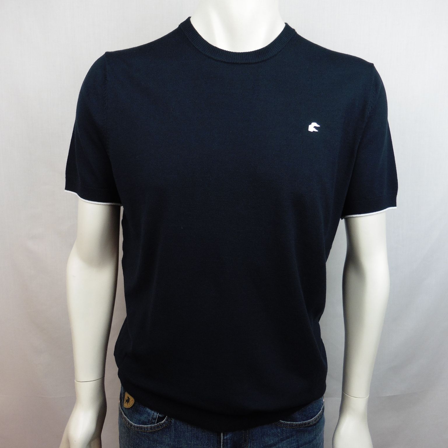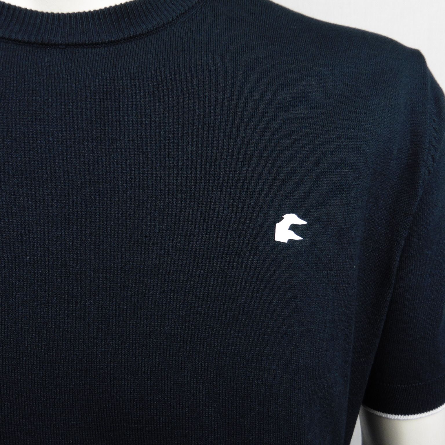 Jersey de Dos Galgos, 82% viscosa 18% poliamida, de punto en azul marino con vivos en puños en color blanco