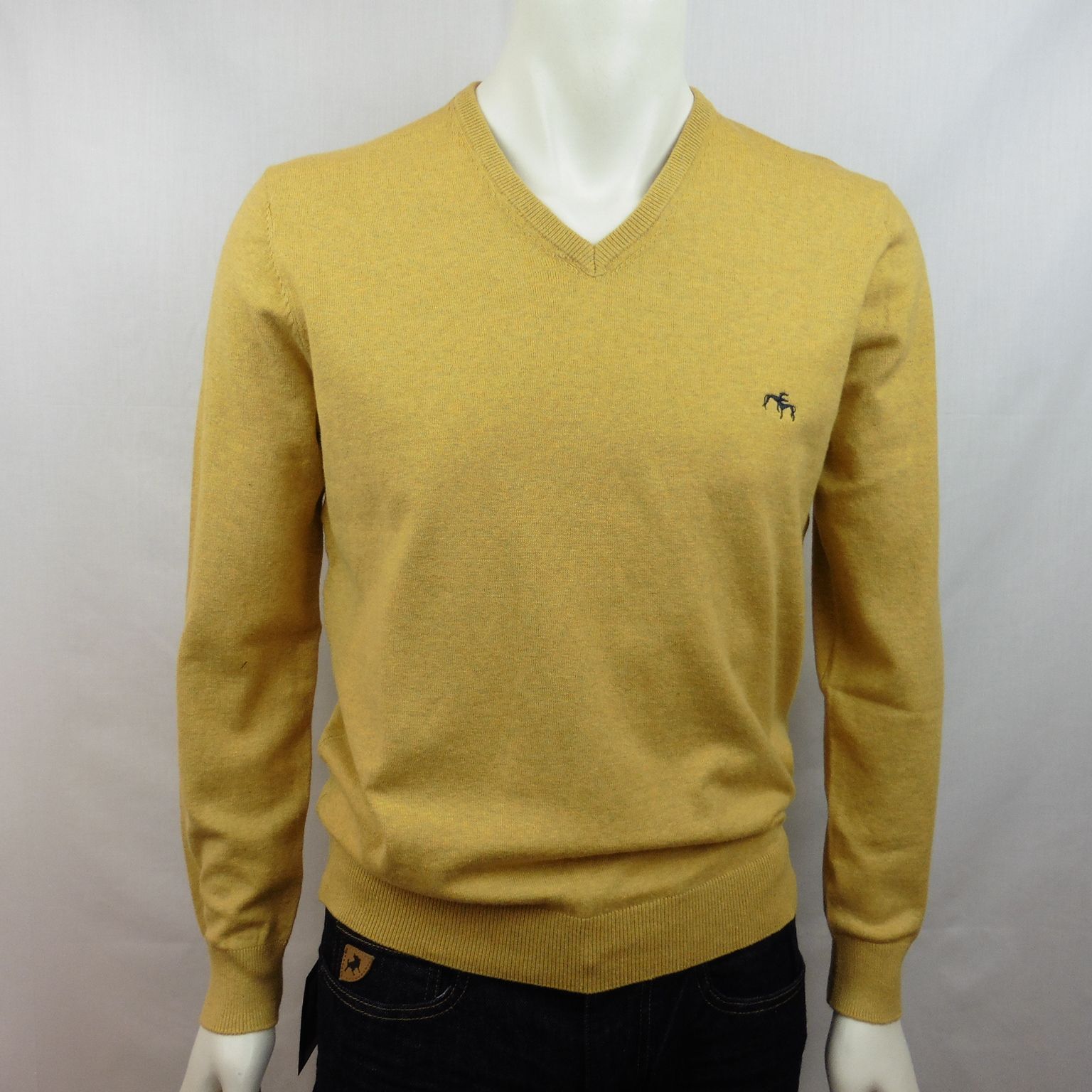Jersey de Dos Galgos, 70% algodón 30% poliamida, cuello pico, en color ocre