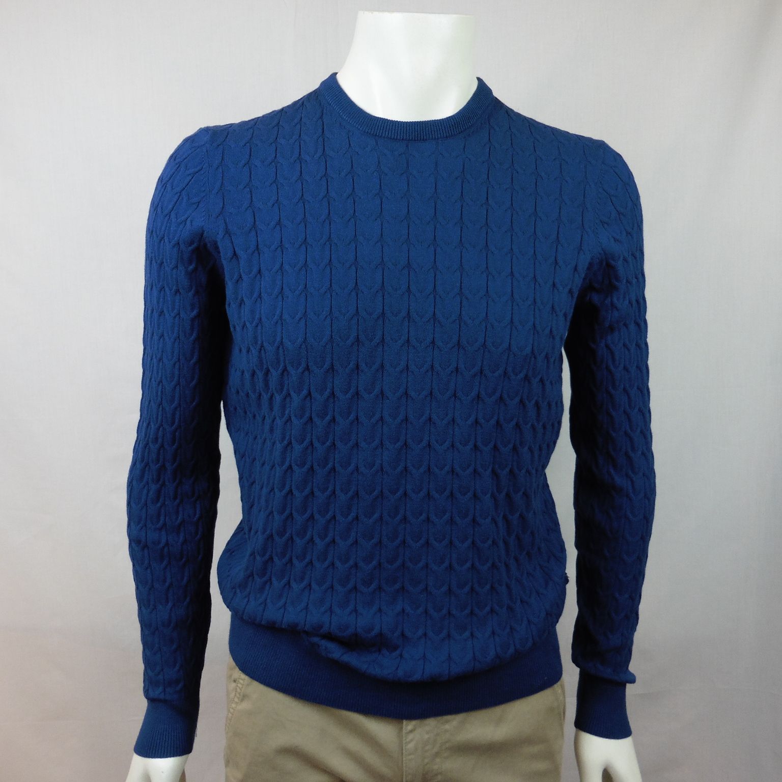 Jersey de Dos Galgos, 70% algodón 30% poliamida, cuello redondo, con ochos, en color azul tinta