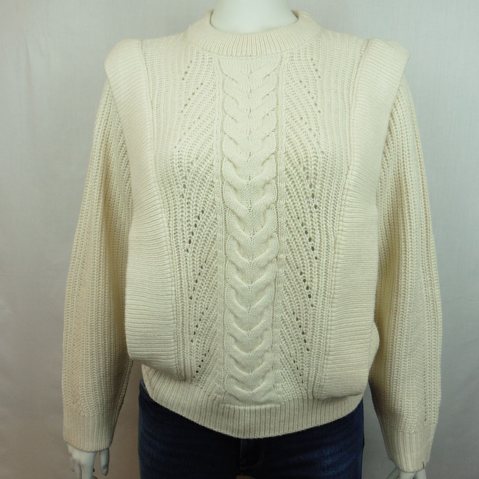 Jersey de punto grueso de Lois, 100% acrílico, de cuello redondo, con ocho central y pliegues laterales en color crudo